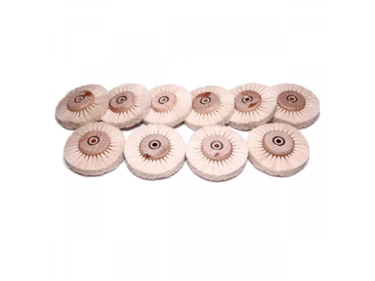 Щётка для шлифмотора 4A80SWS, натуральная, белая, мягкая, используется для обработки и полировки изделий из металлов и пластмасс. Производитель: Sheshan Songjiang Brush, Китай.