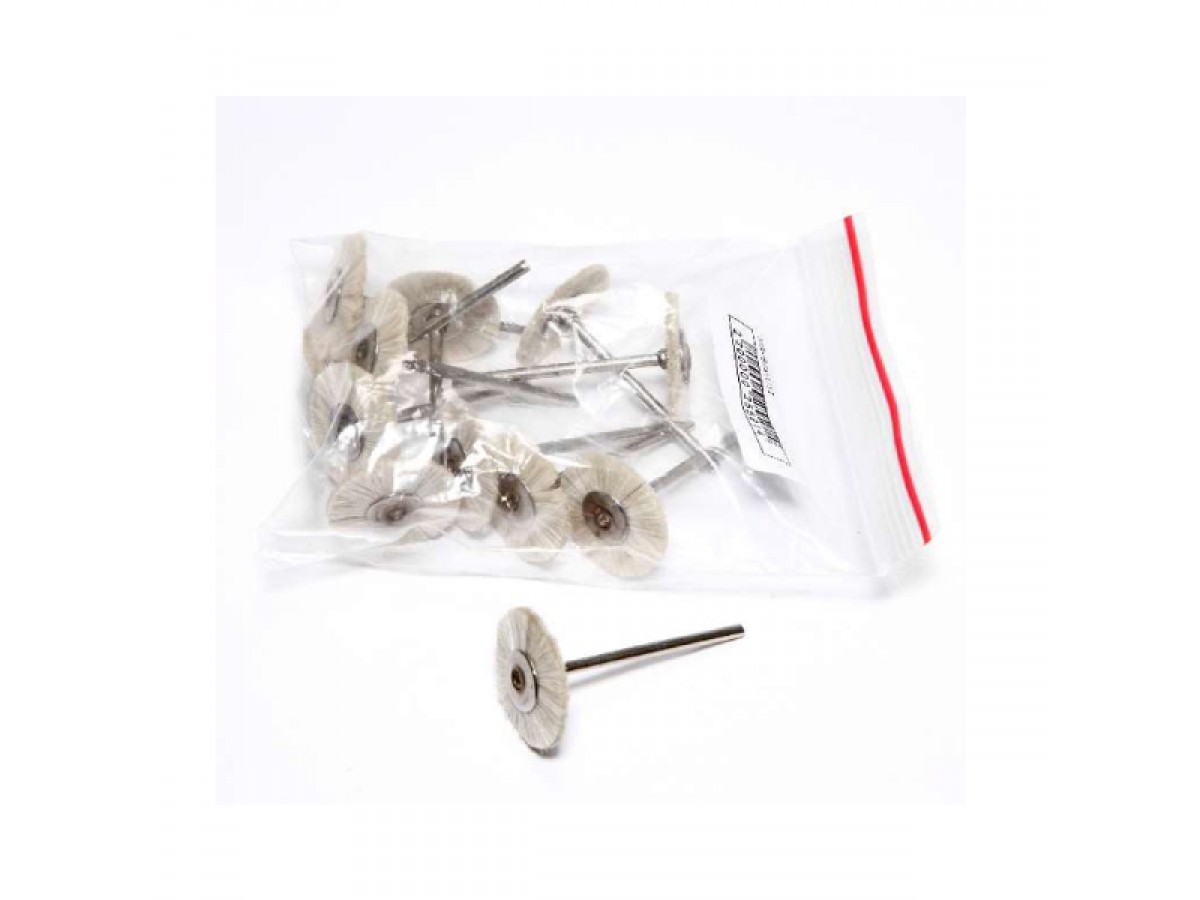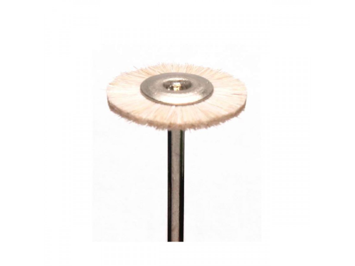 Щёточка MSHS68W зуботехническая, натуральная щетина, белая, экстра мягкая, на дискодержателе (2,34мм) для шлифовки и полировки изделий из акрила, композитных материалов, керамики и металлов, а также для очистки инструмента. Производитель: Sheshan Songjiang Brush, Китай.
