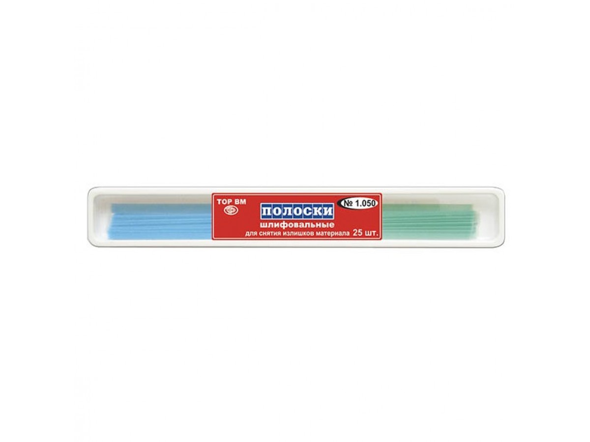 Полоски шлифовальные 1.050 на лавсановой основе для снятия излишков материала. Состоят из 2-х участков с различными абразивными слоями. Производитель: TOP BM, Россия.