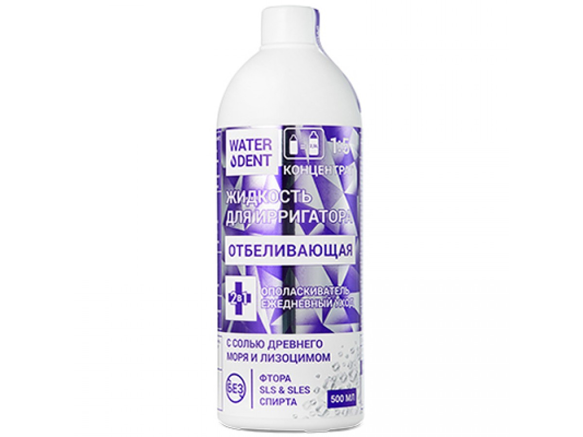 Жидкость для ирригатора Waterdent отбеливающая – это уникальный концентрированный стоматологический продукт, обладающий укрепляющими, антисептическими и отбеливающими свойствами. Производитель: Waterdent, Россия.
