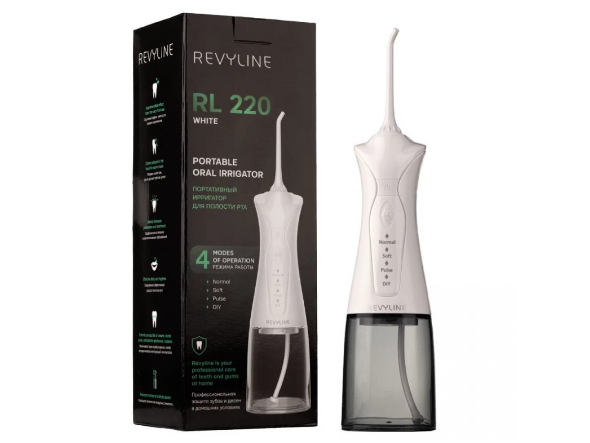 Эта элегантная, привлекающая внимание модель обладает высокими техническими характеристиками. Шкала уровня давления жидкости у портативного ирригатора Revyline RL 220 – 140–900 кПа, что говорит об эффективности ирригационной чистки. Производитель: Revyline, Россия.