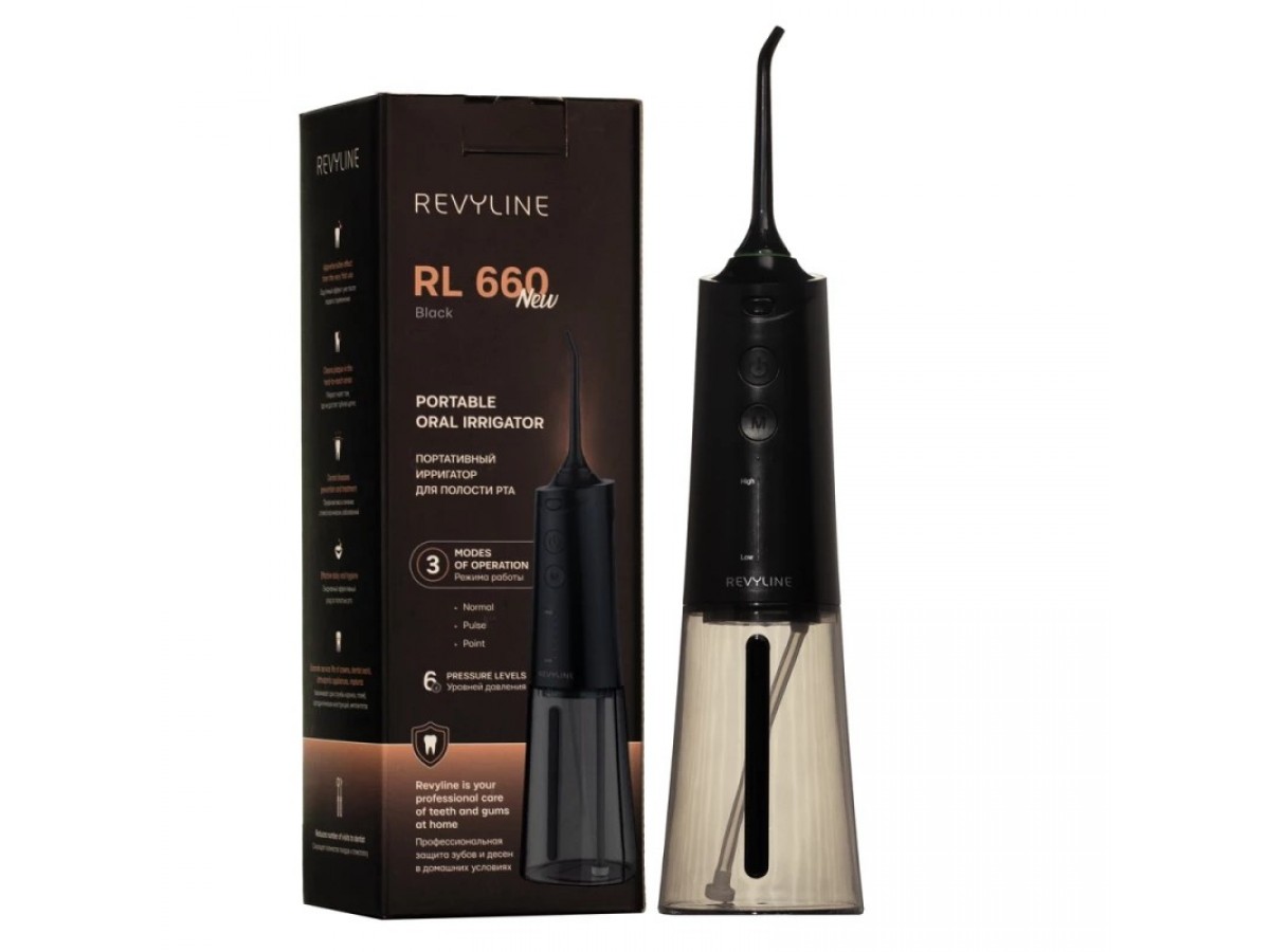 Портативный ирригатор Revyline RL 660 New – мощный и эффективный прибор для ухода за полостью рта, который работает в трех режимах с различными уровнями давления (всего их у ирригатора 6). Выбор давления отражается на корпусе прибора – на вертикальной шкале загораются соответствующие индикаторы. Производитель: Revyline, Россия.