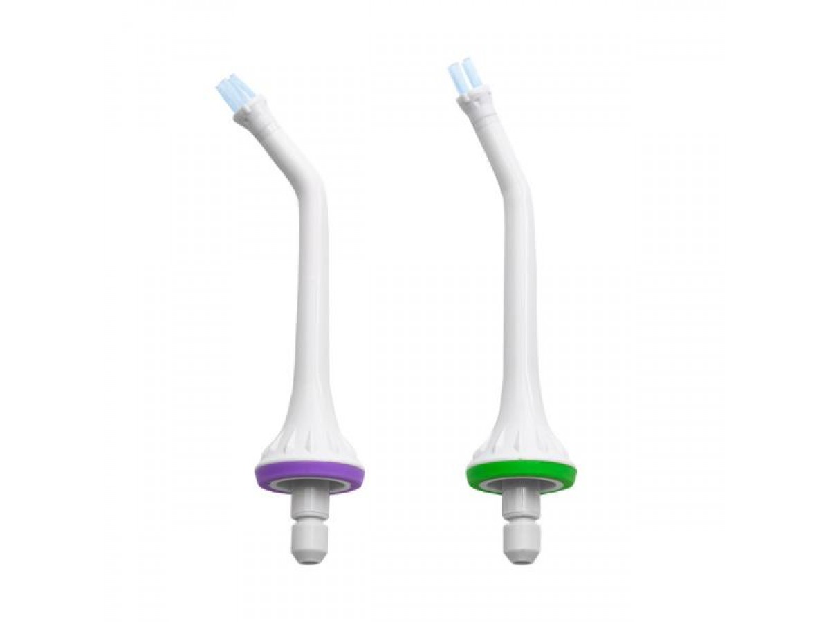 Каждая насадка имеет три пучка щетинок, которые вместе со струёй жидкости позволяют эффективно удалять налет вокруг искусственных конструкций зубного ряда. Конструкция чистящей головки позволяет проникать в самые проблемные зоны зубного профиля – в места соприкосновения имплантов, протезов, виниров, мостов и коронок с деснами и обеспечивать качественный гигиенический уход полости рта.