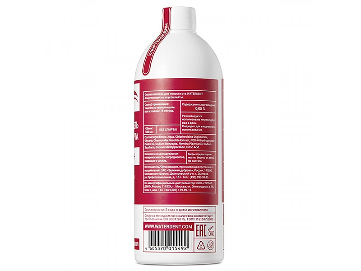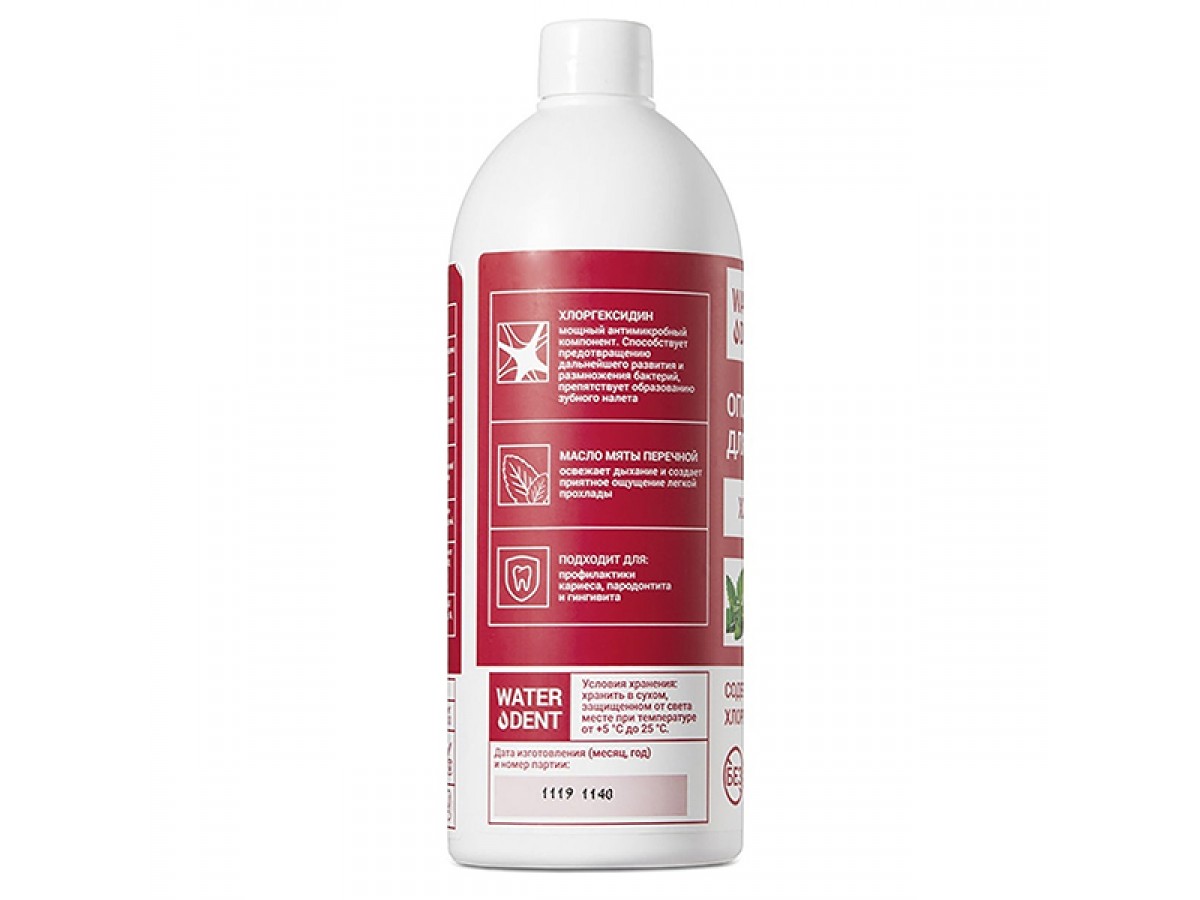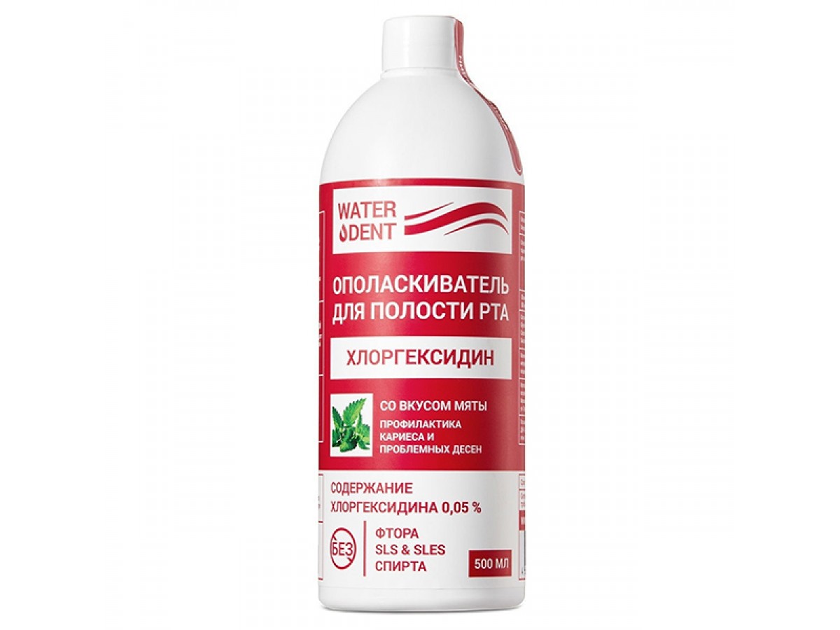 - Ополаскиватель для полости рта Waterdent "Хлоргексидин", без фтора, со вкусом мяты - 500 мл