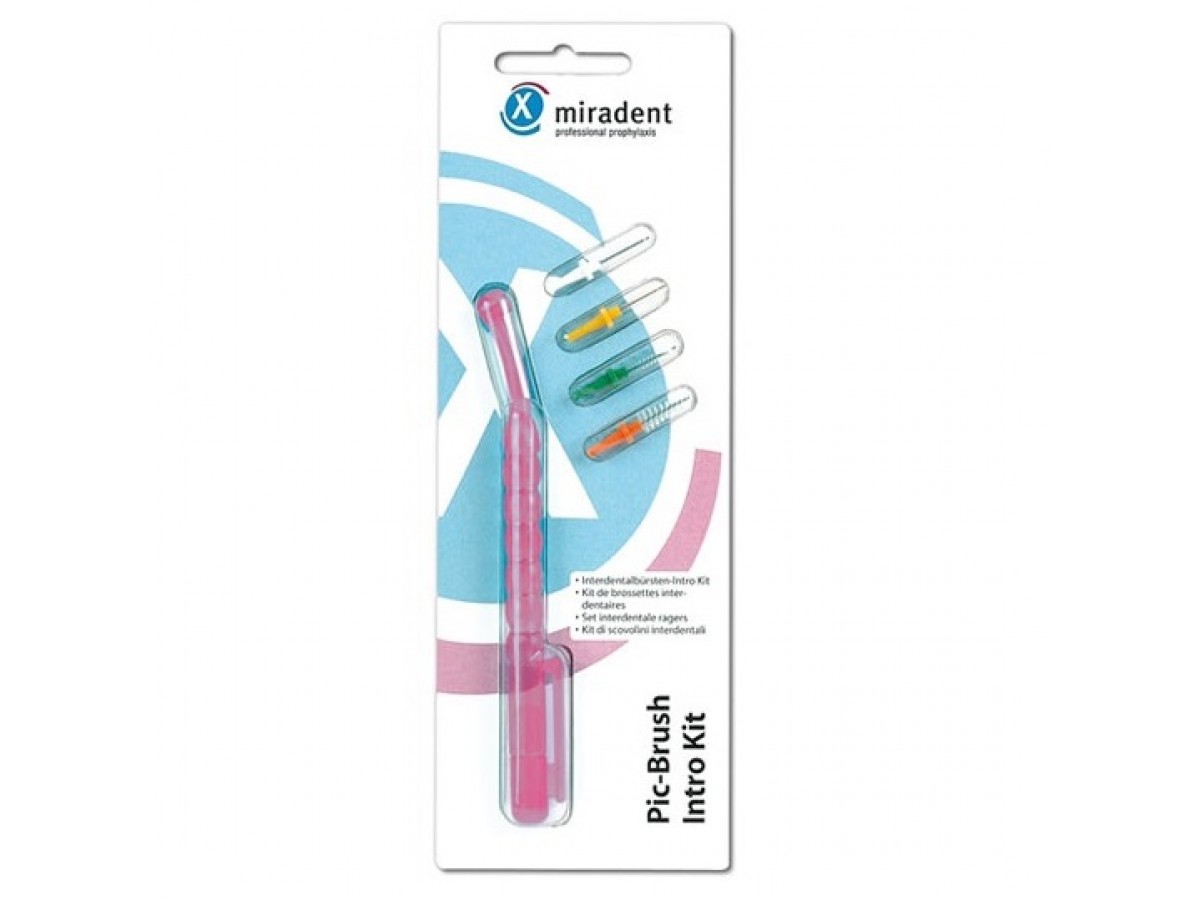 Ёршики Pic-Brush® идеально подходят для очистки межзубных промежутков, очистки брекетов, зубных пластинок и мостов. Положение угла ёршика в ручке равно 120°, что гарантирует оптимальное удобство и комфорт в использовании. Дополнительное отверстие для ершика на ручке позволяет изменить положение и использовать ёршик под прямым углом, что особенно удобно при чистке фронтальных межзубных пространств. Производитель: miradent, Германия.