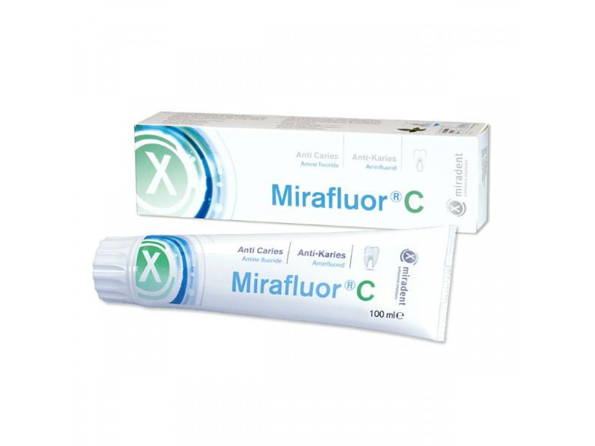 Аминофториды (AmF) в пасте Mirafluor® С (1.250 ppm) ведут к повышению концентрации фторидов в слюне, что препятствует возникновению кариеса. Благодаря химическим свойствам и поверхностной активности, аминофториды покрывают поверхность зубов ровным и однородным молекулярным слоем и показывают ускоренное распределение на поверхности зубов, улучшенное усваивание фторидов, оказывают антигликолитический эффект на зубной налет и, по сравнению с другими фторидными соединениями, обеспечивают депонирование фторидов на эмали. Консистенция плёнки предотвращает её быстрое вымывание.