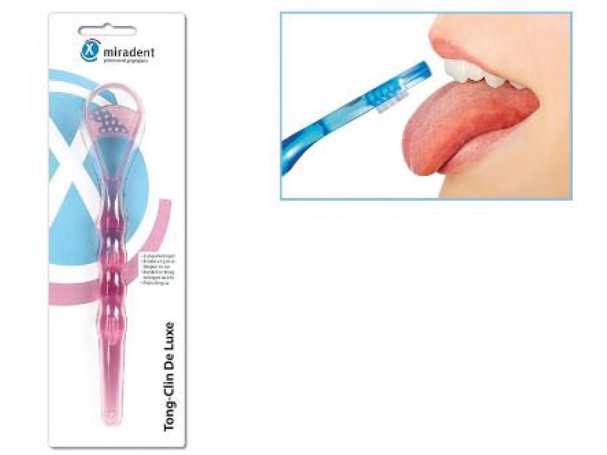 Tong-Clin De Luxe предназначена для удаления налета с языка и устранения неприятного запаха изо рта. Щётка Tong-Clin De Luxe для очистки языка с эргономичной ручкой крайне эффективна благодаря очень коротким щетинкам, которые удаляют налет, минимизируя рвотный рефлекс. Производитель: Miradent, Германия.