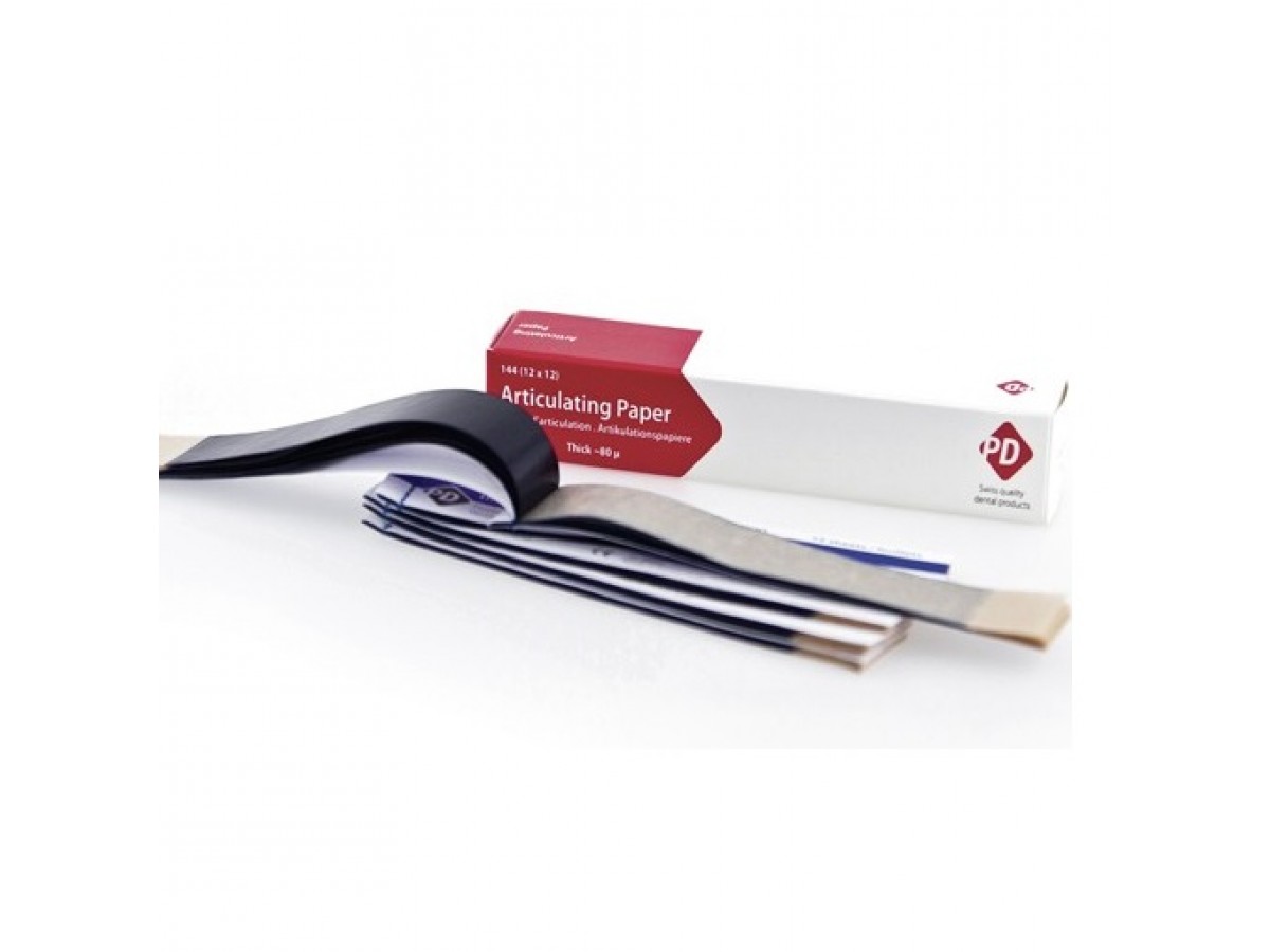 Артикуляционная бумага PD является диагностическим инструментом, используемым для выделения окклюзионных контактов и распределения окклюзионных сил. Двусторонняя артикуляционная бумага из PD изготовлена из высококачественного материала для обеспечения надежной маркировки каждый раз, а чрезвычайно тонкая, эластичная и слезоточивая бумага 50- и 80-микрон гарантирует абсолютную точность пин-точек в маркировке любого высокого места, окклюзия и артикуляция без смазывания. Сформулирующая бумага доступна тонкая или толстая в I- (полосы), C- (половина подковы) и U- от (лошадиная подкова), но и в однотоне (синий или красный) и двухцветный (синий и красный) для удобства использования. Производство: PD, Швейцария.