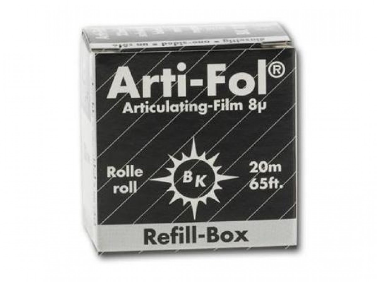 Артикуляционная фольга Arti-Fol 8 мкм — это копирка, которая интенсивно окрашивает цветными отпечатками на трудно тестируемых поверхностях. Производство: Bausch, Германия.
