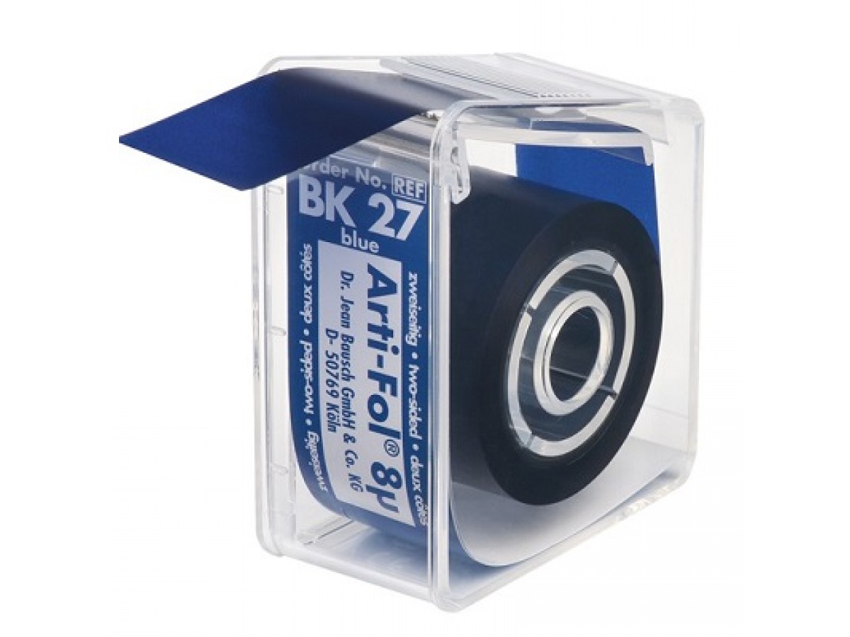 - Артикуляционная фольга Arti-Fol BK 27 двусторонняя, синяя, толщиной 8 мкм, размером 20м х 22мм в раздаточном устройстве - 1 шт.