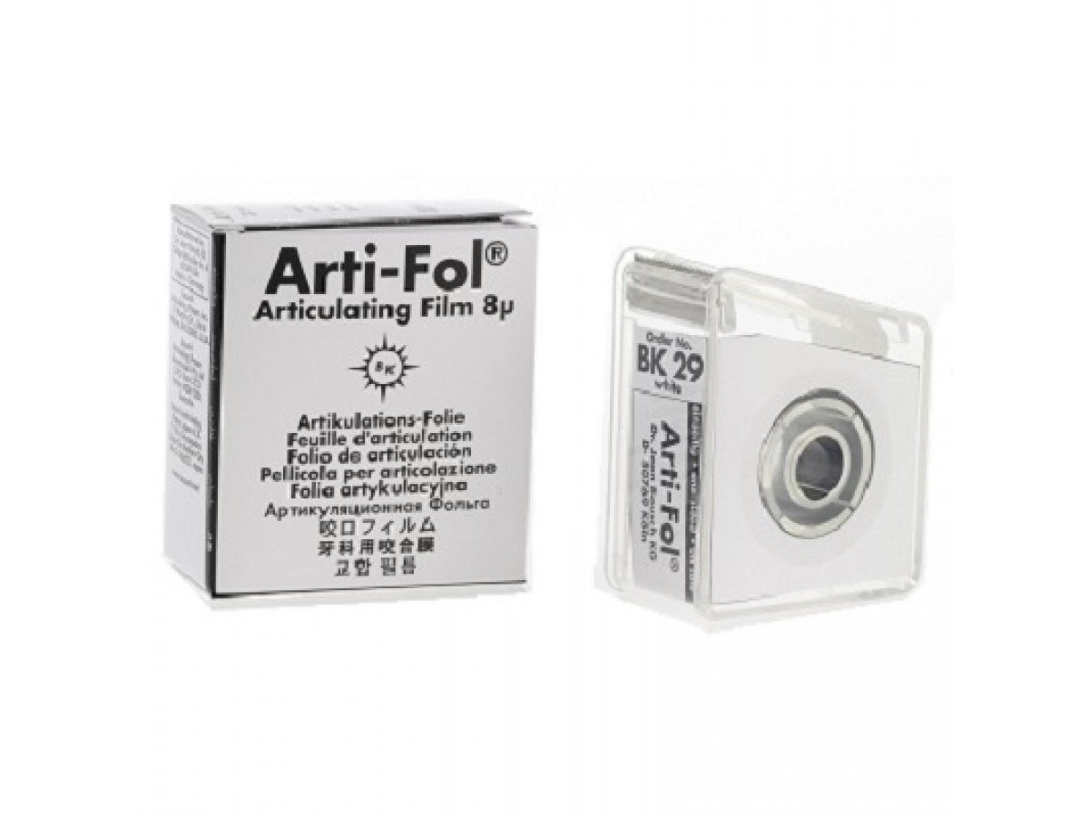 - Артикуляционная фольга Arti-Fol BK 29 односторонняя, белая, толщиной 8 мкм, размером 20м х 22мм в раздаточном устройстве - 1 шт.