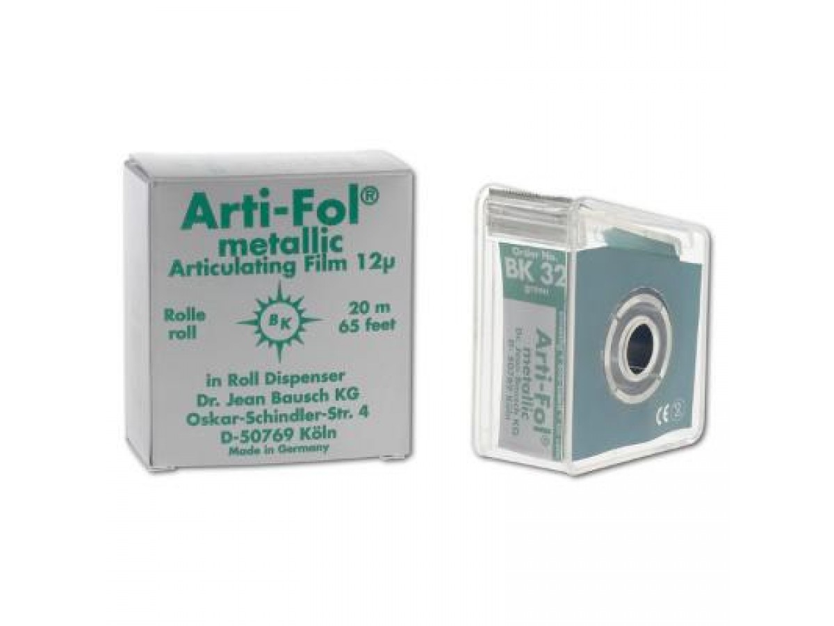 - Артикуляционная фольга Arti-Fol BK 32 металлик односторонняя, зеленая, толщиной 12 мкм, размером 20м х 22мм в раздаточном боксе - 1 шт.