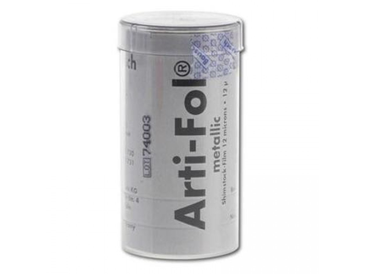 Артикуляционная фольга Arti-Fol металлик, толщиной 12 мкм — это копирка с хорошей прочностью и малой толщиной, которая подходит для проверки аппроксимальных контактов при примерке мостовидных протезов и коронок. Эту фольгу можно свободно вводить между апроксимальными контактами. Производство: Bausch, Германия.
