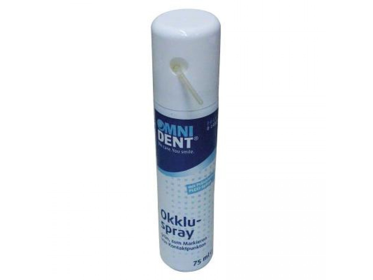 Окклюфин - окклюзионный спрей, предназначенный для маркировки контактов во время припасовки при протезировании, применяется в зуботехнической лаборатории и клинике. Входящие в состав спрея компоненты, безвредны при попадании в организм человека. Производство: OmniDent, Германия.