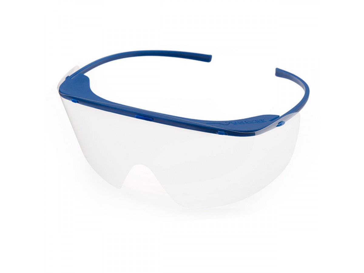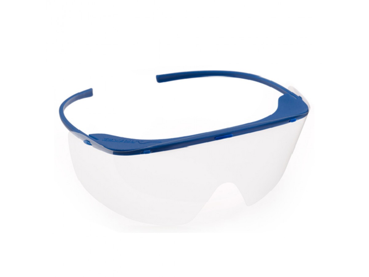 Одноразовый ультралегкий укороченный экран для оператора, разработанный для защиты глаз и скул. Сменные прозрачные щитки. Одна упаковка включает экраны с оправами желтого, зеленого, синего, розового и черных цветов. Производитель: Euronda S.p.A., Италия.