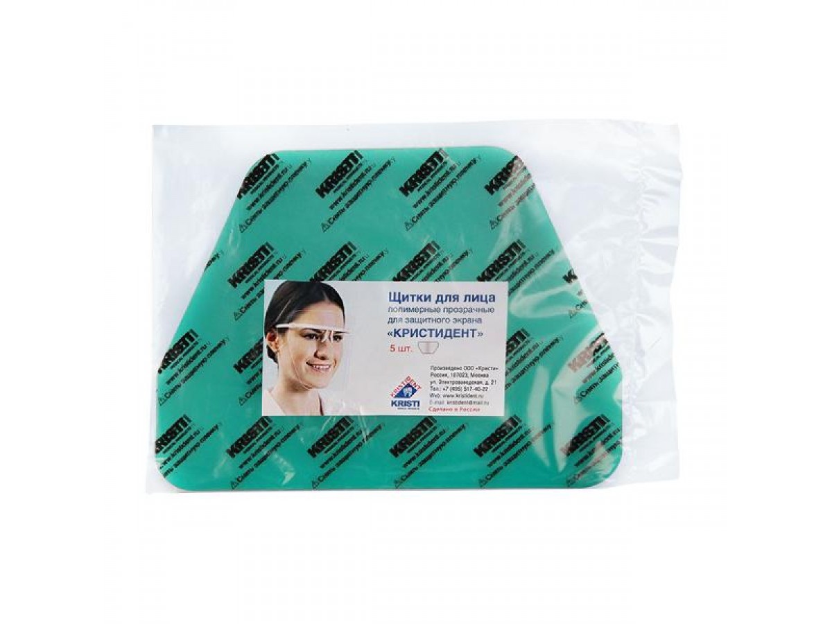 Щитки запасные для лица сверхлегкие (16 гр.), идеально прозрачные, многоразовые. Производитель: Кристидент, Россия.