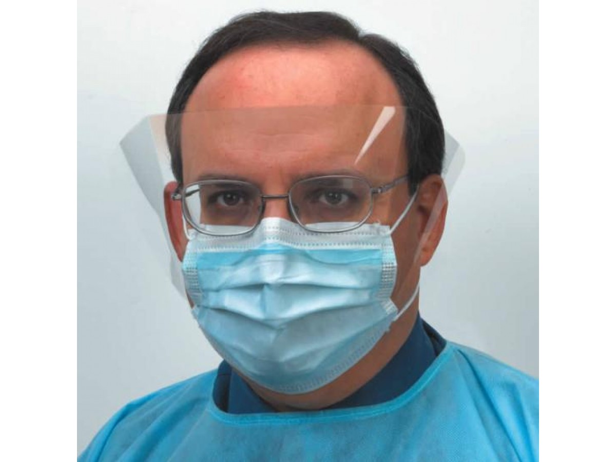 Одноразовые бумажные трехслойные маски на резиночках с водоотталкивающим покрытием. Внутренняя поверхность маски покрыта специальным слоем, предотвращающим запотевание. Присутствует зажим для носа. Маска снабжена защитным экраном для глаз. Производитель: CROSSTEX, США.