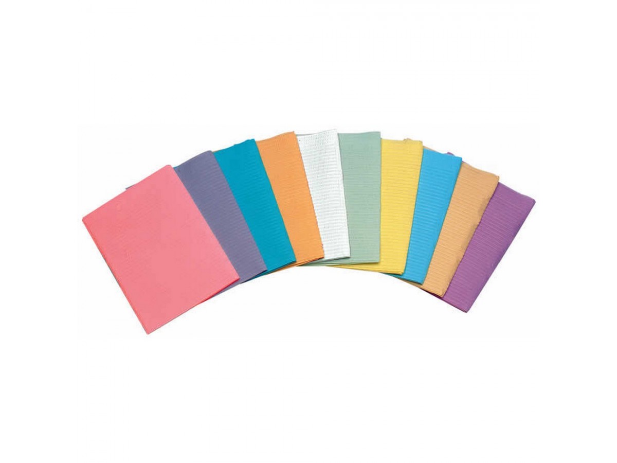 Двухслойные бумажные нагрудники на полиэтиленовой основе для пациентов. Метод крепления — зажимы. Производитель: Sswhite, США.