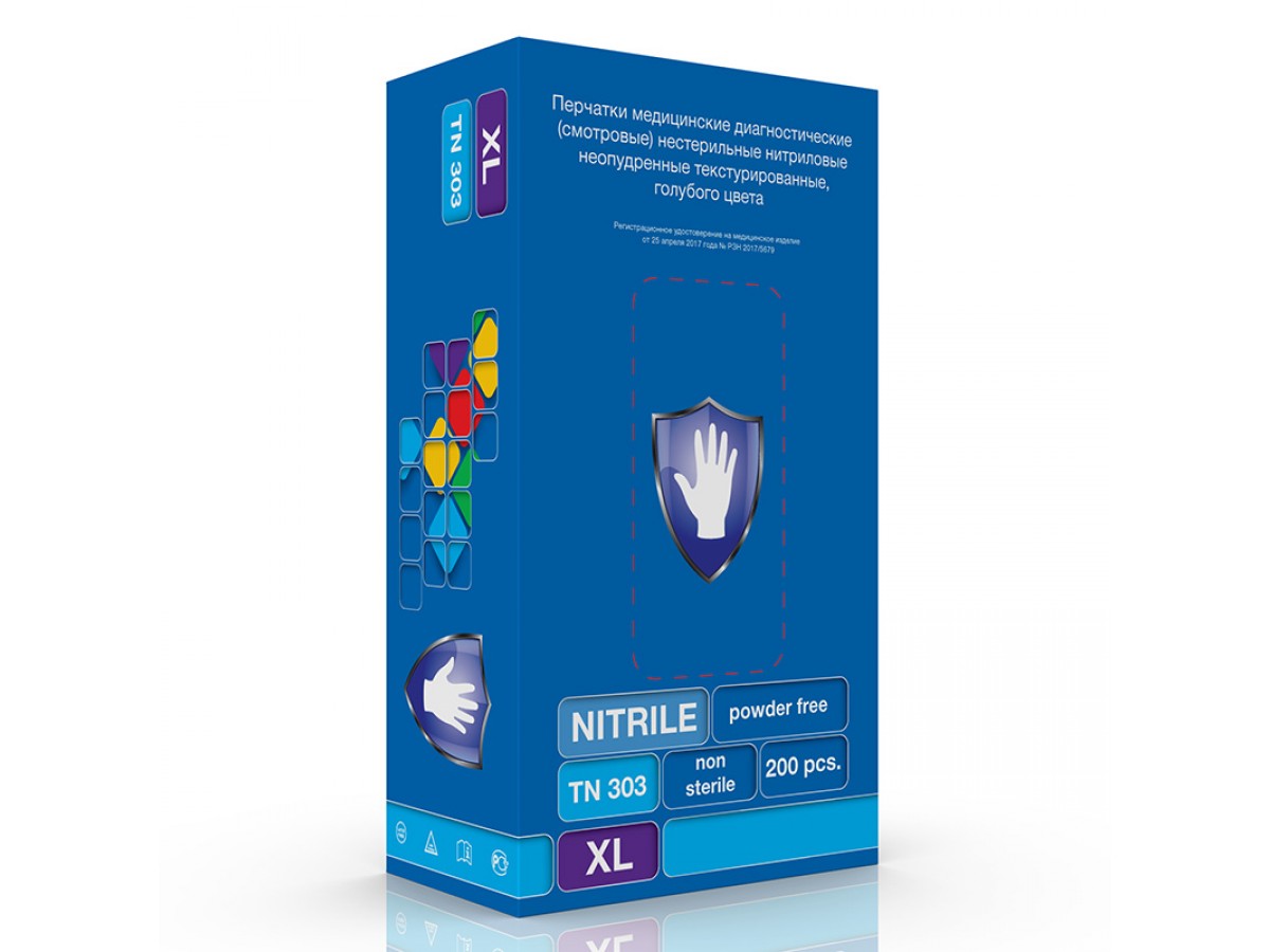 Перчатки нитриловые TN303, изготовленные из высококачественного нитрила, обеспечивают высокую тактильную чувствительность. Плотно облегает руку, обеспечивая дополнительный комфорт при работе. Гипоаллергенные за счет отсутствия протеинов латекса. Имеют высокую устойчивость к химическим и биологическим жидкостям. Возможно использование в пищевой промышленности, индустрии красоты (тату-салоны). Производитель: Top Glove Sdn. Bhd., Малайзия