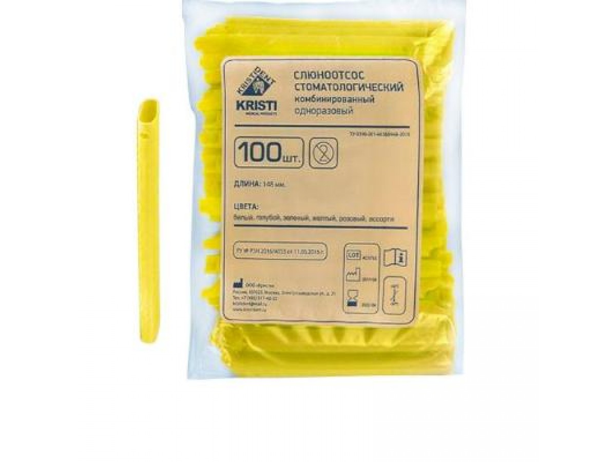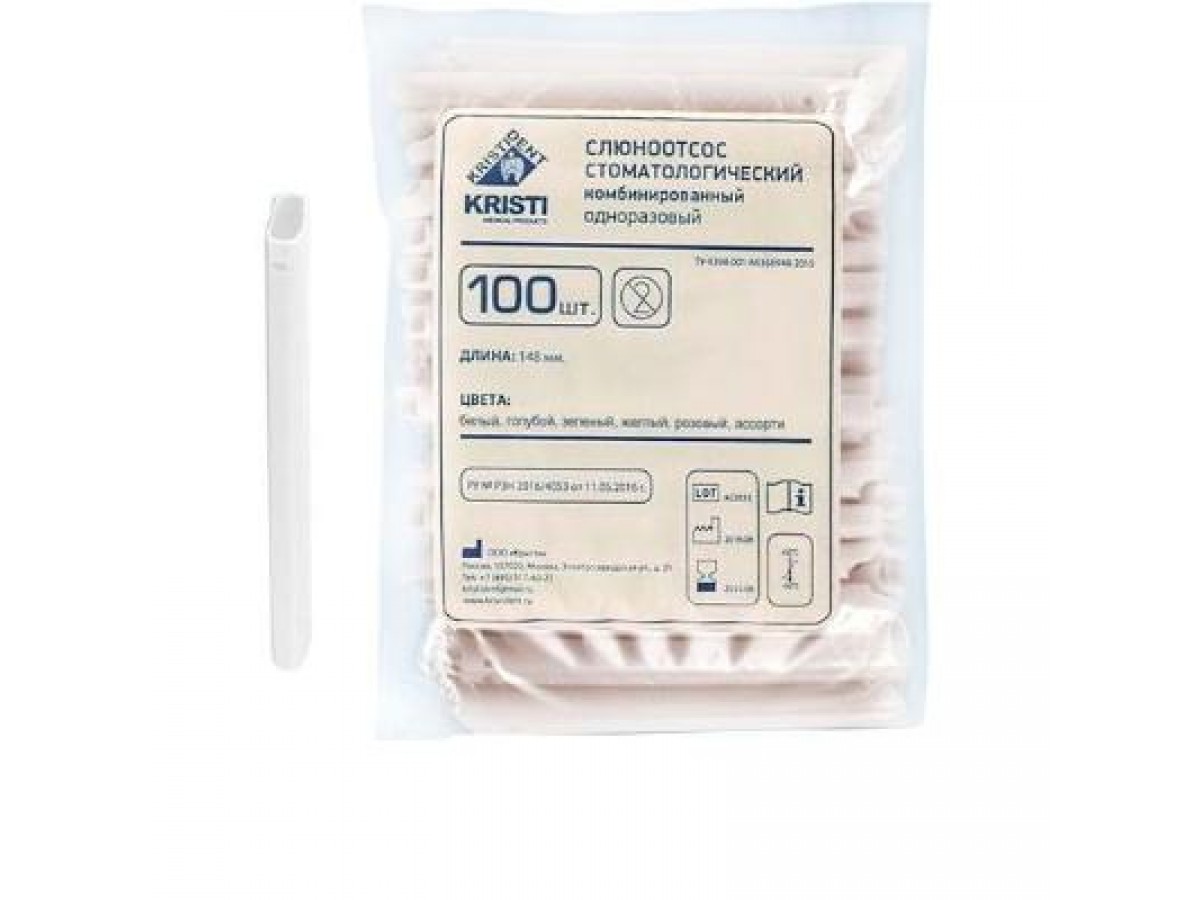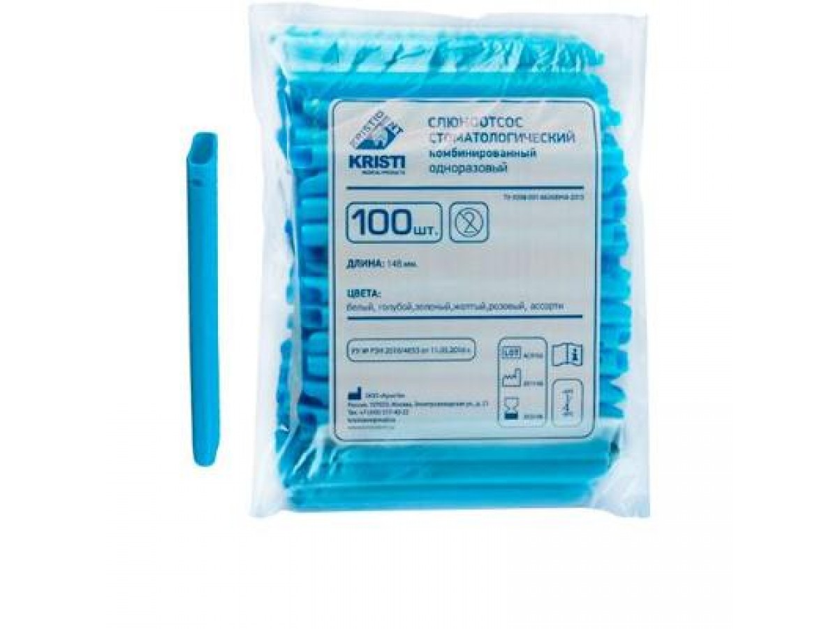 Наконечник аспирационный, комбинированный, одноразовый предназначен для всасывания (аспирации) из ротовой полости пациента аэрозолей и твердых частиц, находящиеся в жидкости во взвешенном состоянии при проведении стоматологических процедур, с целью удаления ограниченного объема жидкости (слюны) и взвеси изо рта пациента. Производитель: Кристидент, Россия.