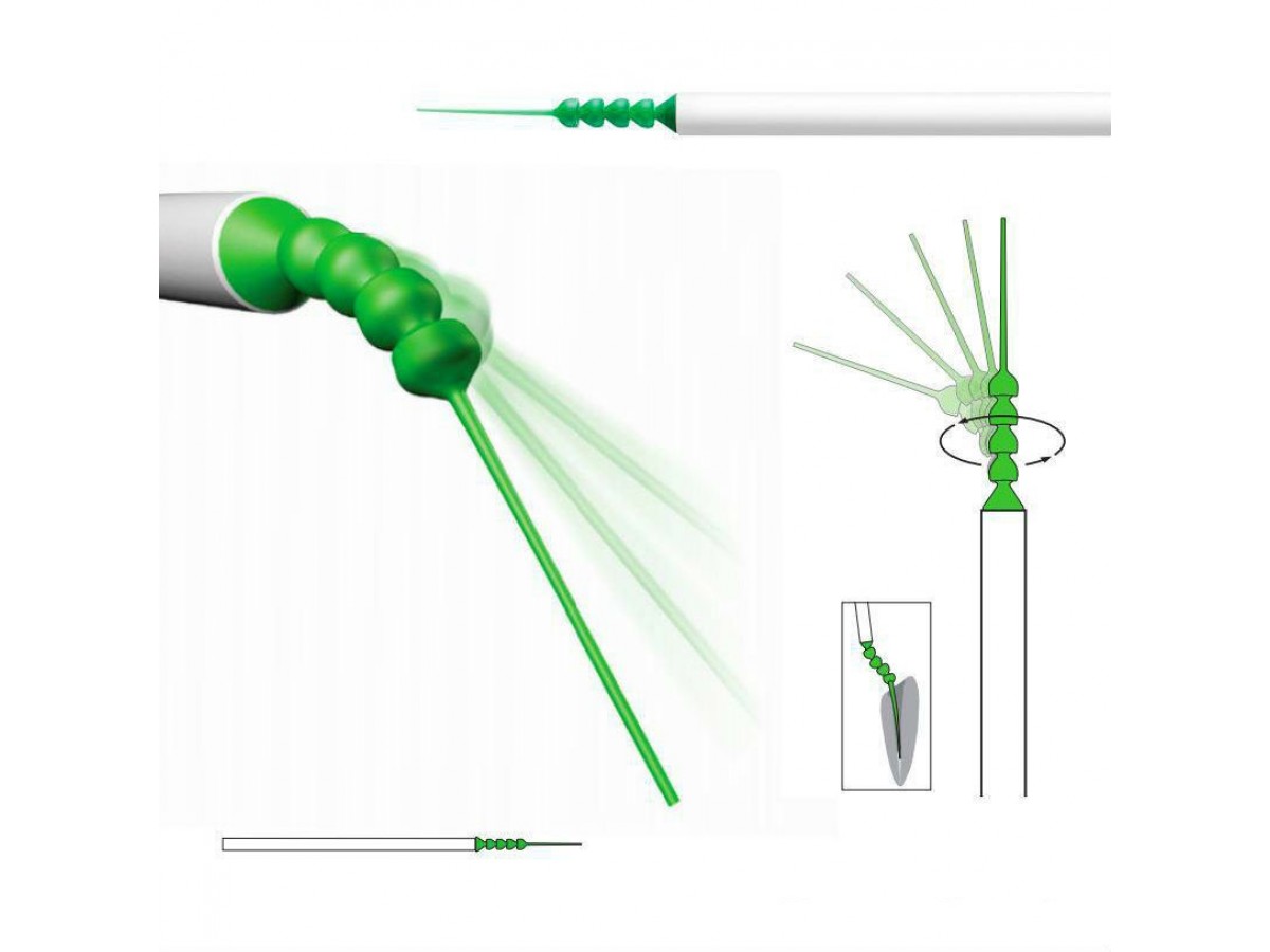 Благодаря инновационному дизайну всасывающая насадка обладает гибкостью в разных направлениях и легко может вводиться в труднодоступные корневые каналы без необходимости изгибать наконечник Canal Tip.