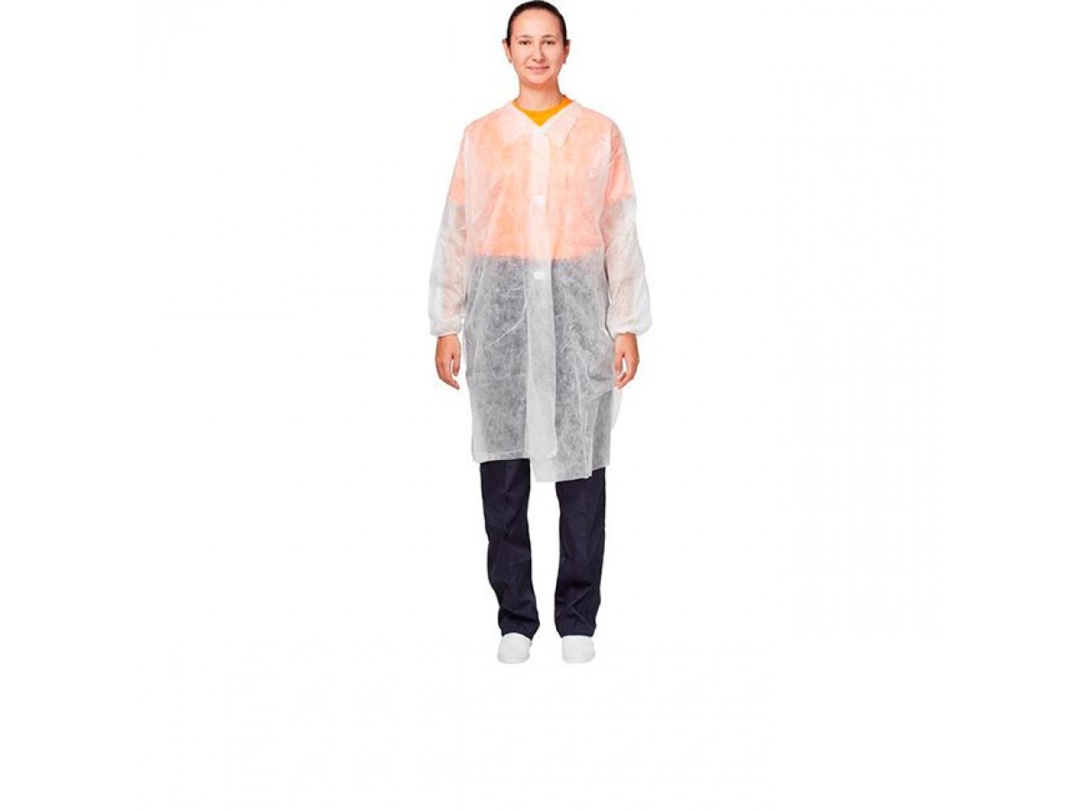 Халат медицинский одноразовый из нетканого материала спанбонд c центральной застёжкой на липучке не стерильный.