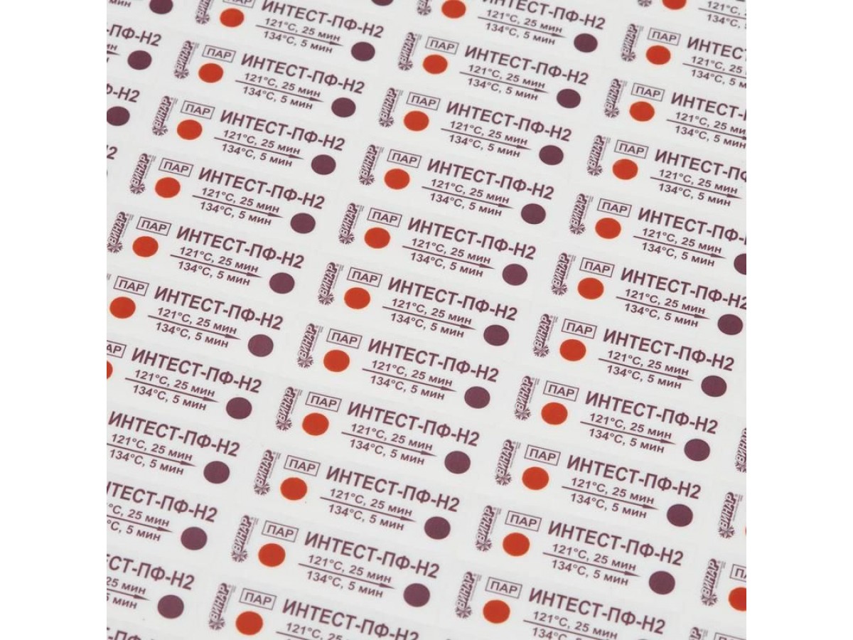 Индикатор стерилизации «Винар ИнТест-ПФ2» без журнала. Класс 4 (многопеременные индикаторы) по ГОСТ ISO 11140-1-2011. Индикаторы «ИнТест-ПФ» предназначены для контроля соблюдения критических переменных паровой стерилизации — температуры стерилизации, времени стерилизационной выдержки и наличия насыщенного водяного пара как внутри стерилизуемых изделий, так и в стерилизационной камере паровых форвакуумных стерилизаторов при соответствующих режимах. Контролируемые режимы стерилизации в диапазонах: 121+3 °C/25+2 минут, 134+3 °C/5+1 минут. Производитель: ВИНАР, Россия.