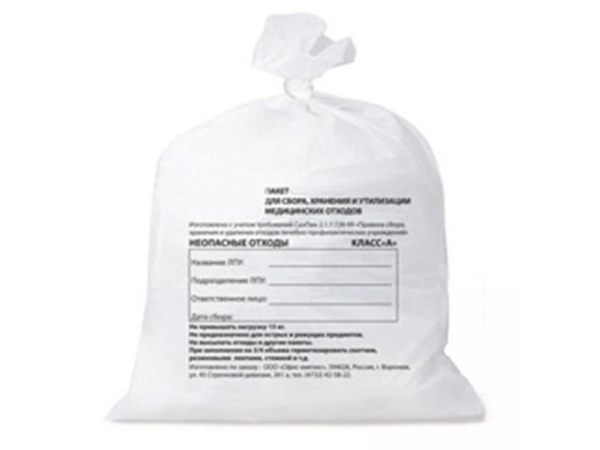 Пакет для сбора отходов класс А - белые. Производитель: МедПак, Россия.