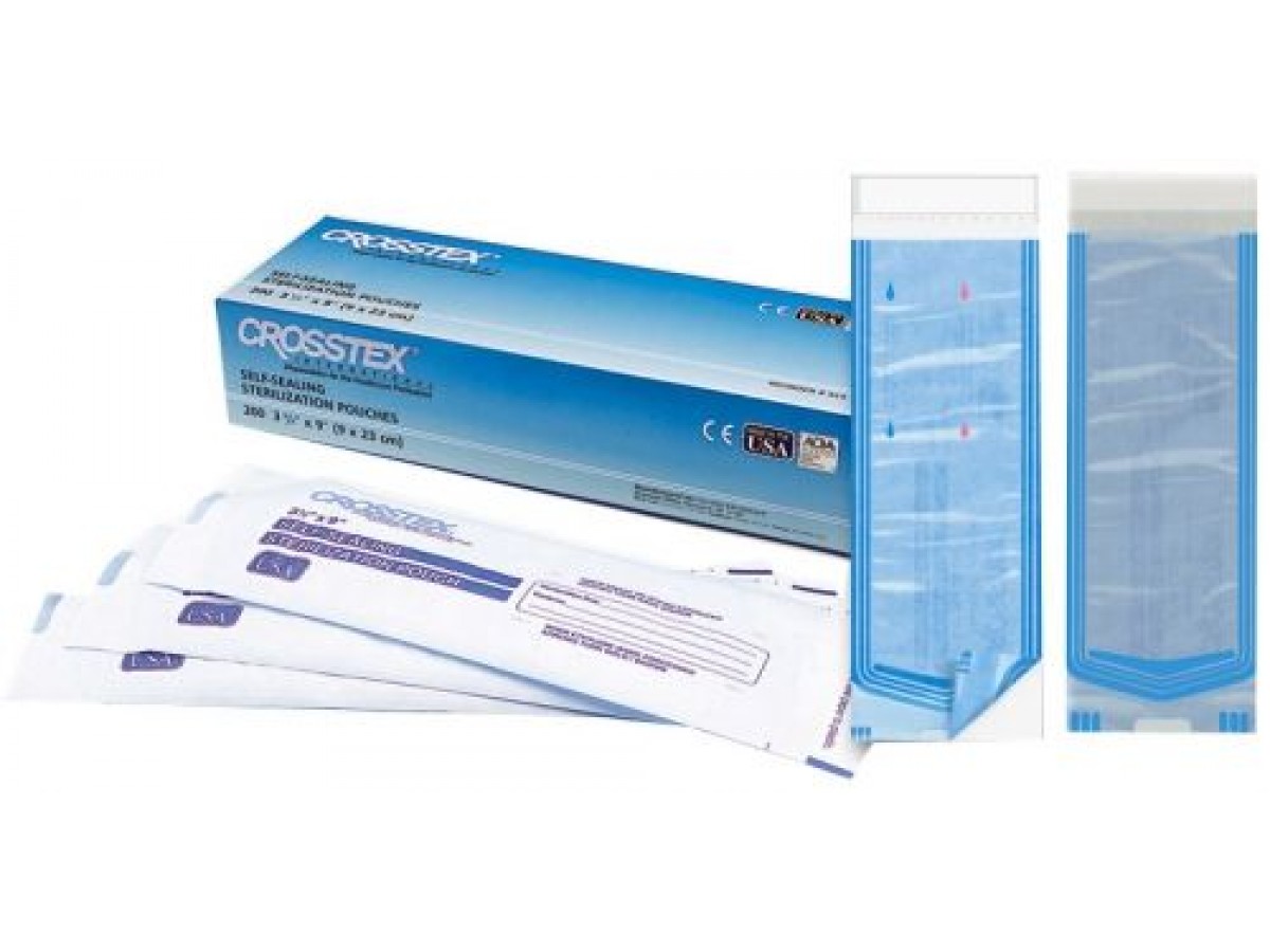 Комбинированные упаковки представлены самоклеющимися пакетами и рулонным материалом (без складок) различных типоразмеров, предназначенными для упаковывания изделий, стерилизуемых паровым (при температурах 121 °С - 134°С) и газовым (с применением окиси этилена) методами. Производитель: Вита-Crosstex, США.