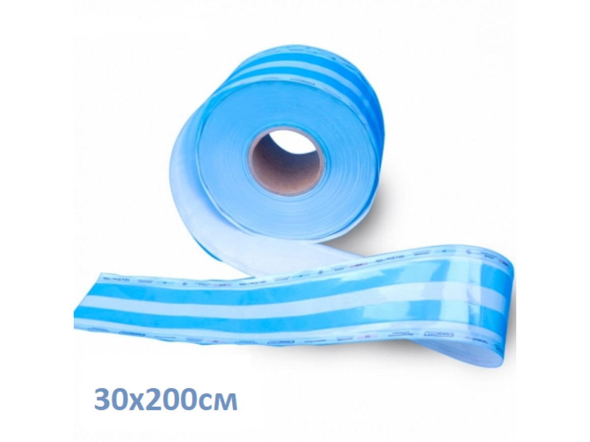 Рулон Клинипак для паровой и газовой стерилизации - является комбинированной упаковкой, состоящей из семислойной полимерной пленки бледно-голубого цвета и специальной водооталкивающей медицинской бумаги белого цвета (непрозрачная сторона) плотоностью 60 и 70 г/м2, соединенных между собой термошвом. На бумажной стороне нанесены: торговая марка, размер, производственная кодировка и цветные химические индикаторы стерилизации. Производитель: Вита-Пул, Россия.