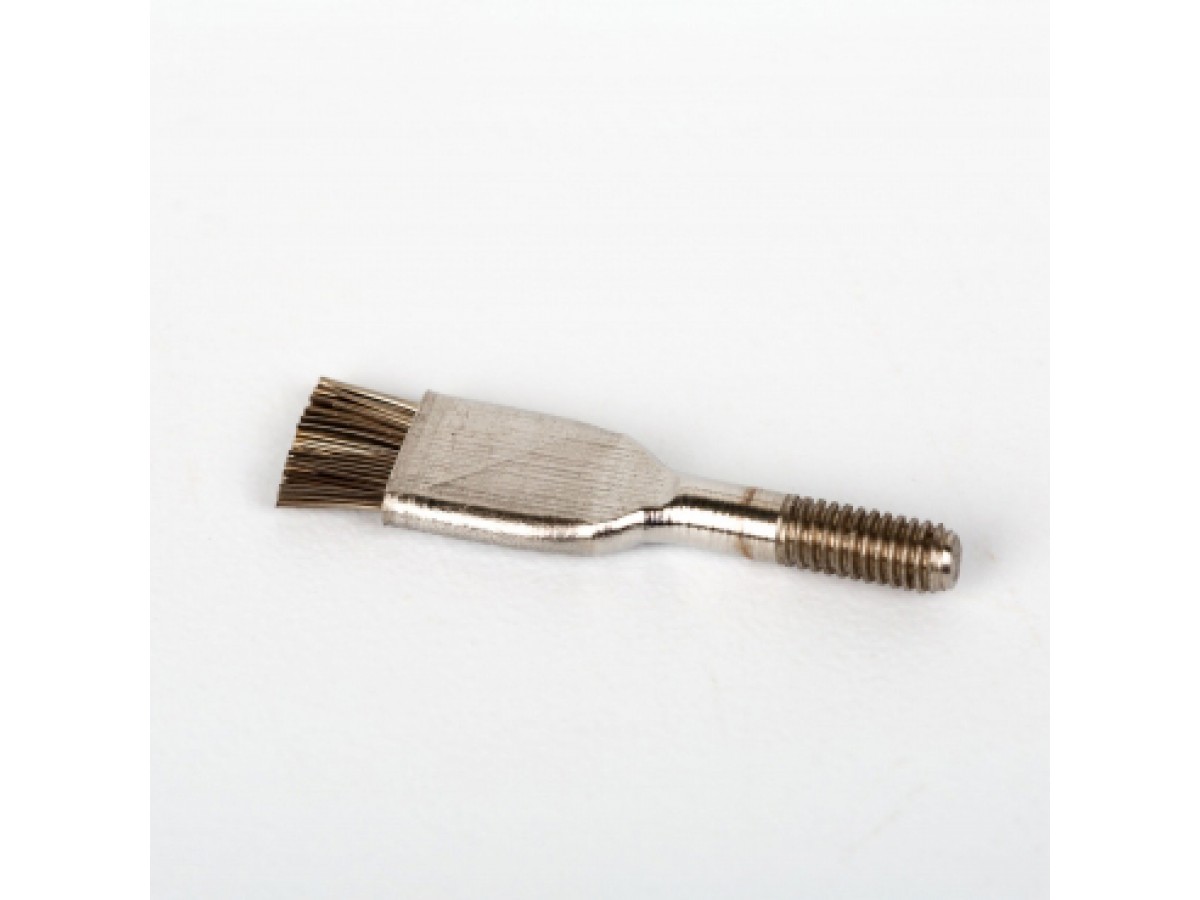 Щетка используется для очищения стоматологических инструментов и боров. Изготовлен из латуни, размер 55х23. Благодаря передвигающейся обойме обеспечивается образование короткой жёсткой рабочей области прибора. Когда рабочая область теряет свои качества, ее легко можно срезать и изменить положение обоймы-насадки. Производитель: Сибмединструмент, Россия (Томск).