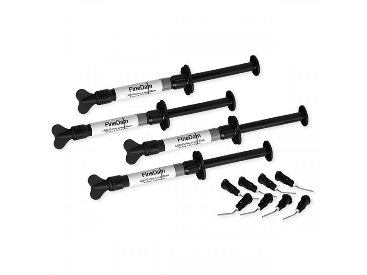 FineDam – материал световой полимеризации для изоляции тканей, расположенных рядом с зубом, который подлежит отбеливанию. Материал твердеет под действием фотолампы, легко и рационально наносится. Производитель: Spident, Ю.Корея.
