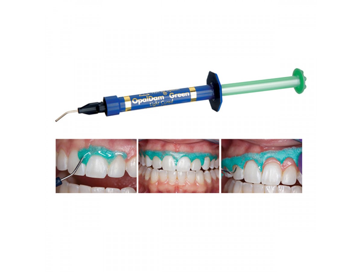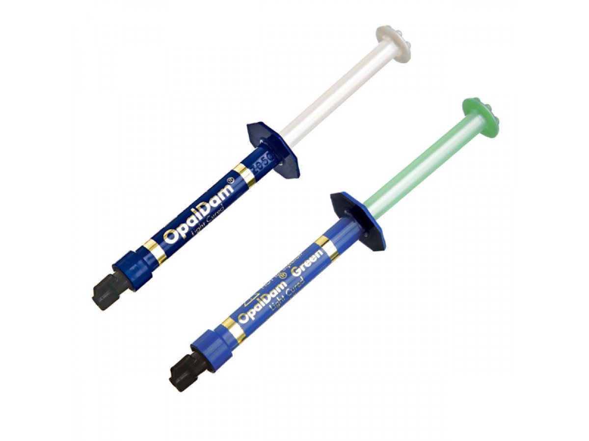 OpalDam представляет собой пассивно адгезивный (изолирующий) барьер на основе полиметилметакрилата, используемый для изоляции ткани, прилегающей к отбеливаемым зубам. Если отбеливается только один зуб, можно использовать OpalDam для защиты соседних зубов. OpalDam отражает свет в целях минимизации нагрева и чувствительности тканей. OpalDam Green обеспечивает надёжный, всегда хорошо видимый барьер. Производитель: Ultradent, США.