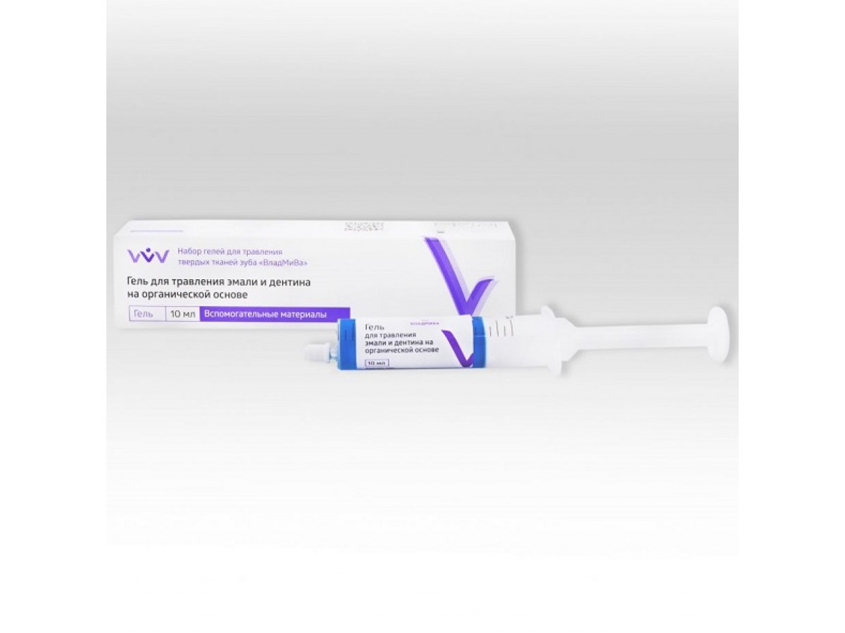 Гель для травления эмали и дентина на органической основе - предназначен для травления эмали и дентина перед пломбированием кариозных полостей препарируемого зуба. Производитель: ВладМиВа, Россия.