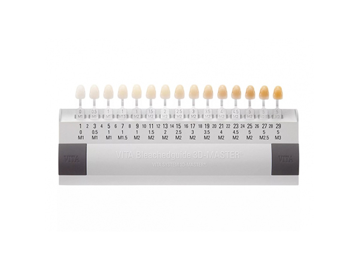 Расцветка VITA 3D-Master отбеленных оттенков. В разработанной специалистами фирмы цветовой системе VITAPAN 3D-MASTER удалось систематизировать все возможные оттенки цвета живого зуба и скомпоновать их в шкалу, которой просто и удобно пользоваться врачу и технику при согласовании цвета создаваемых керамических и полимерных реставраций. Производитель: Vita, Германия.