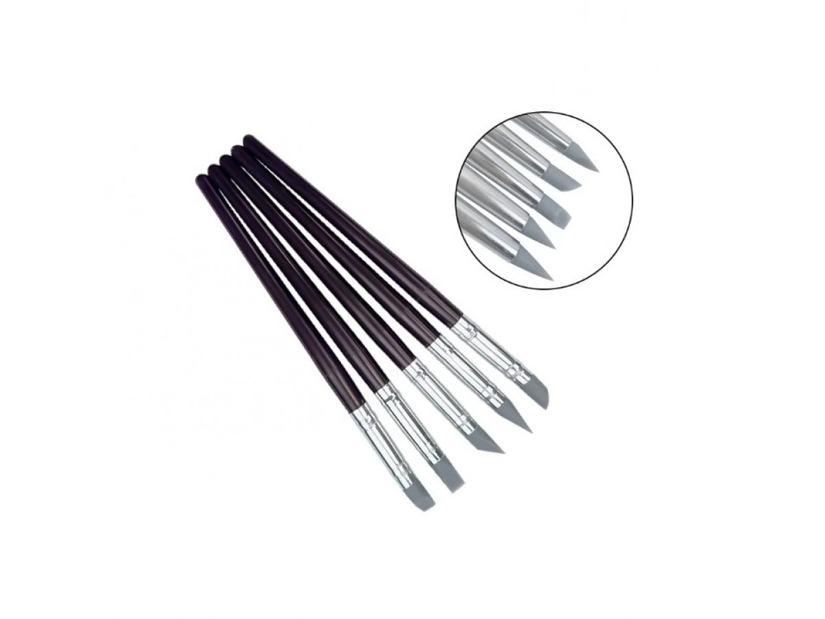 Набор гладилок-кисточек для моделирования композитов с мягким силиконовым наконечником белого цвета на деревянной ручке. Производитель: Китай.