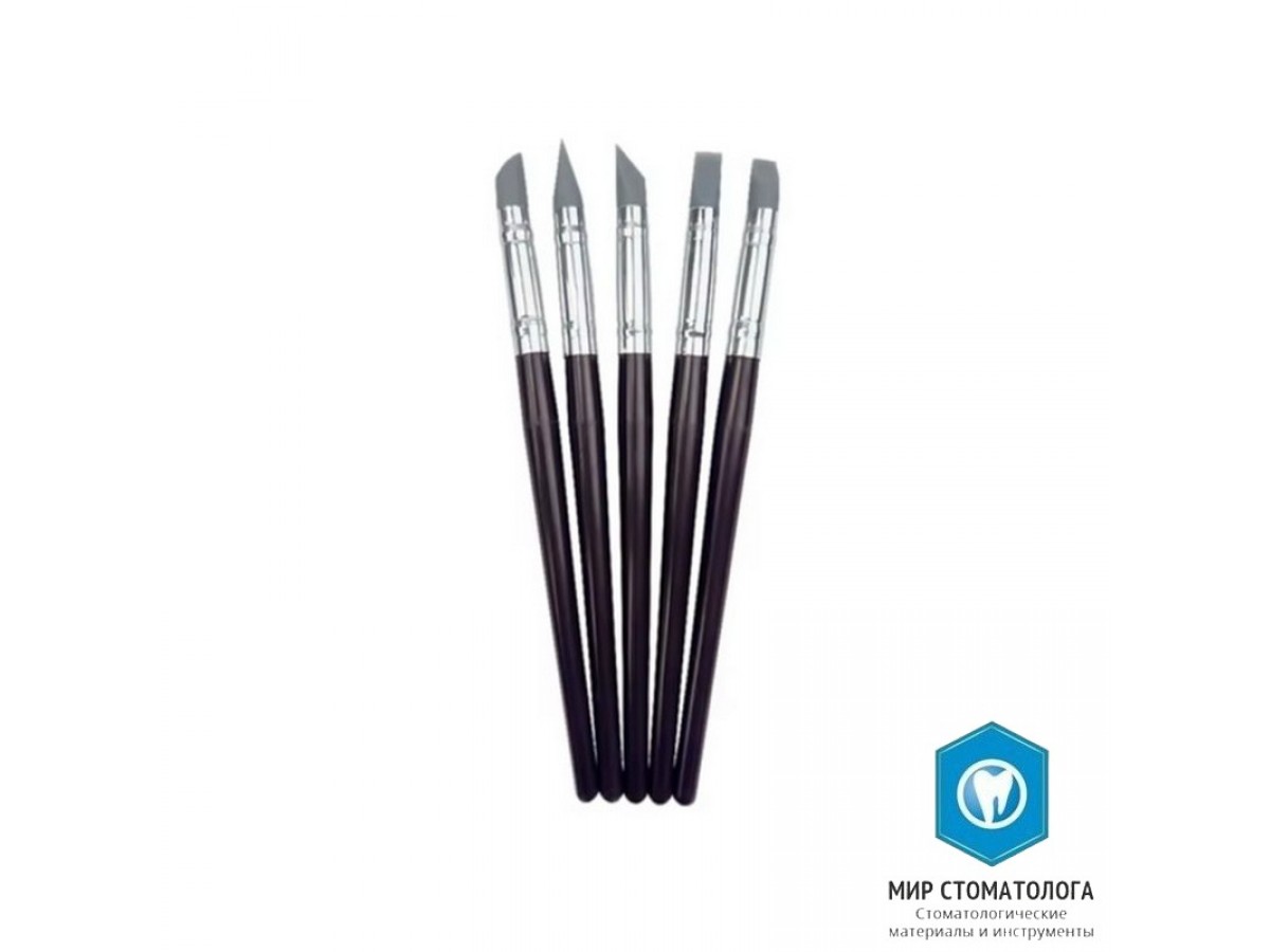Набор гладилок-кисточек для моделирования композитов с мягкими силиконовыми наконечниками серого цвета средней жесткости на деревянной ручке. Производитель: Китай.