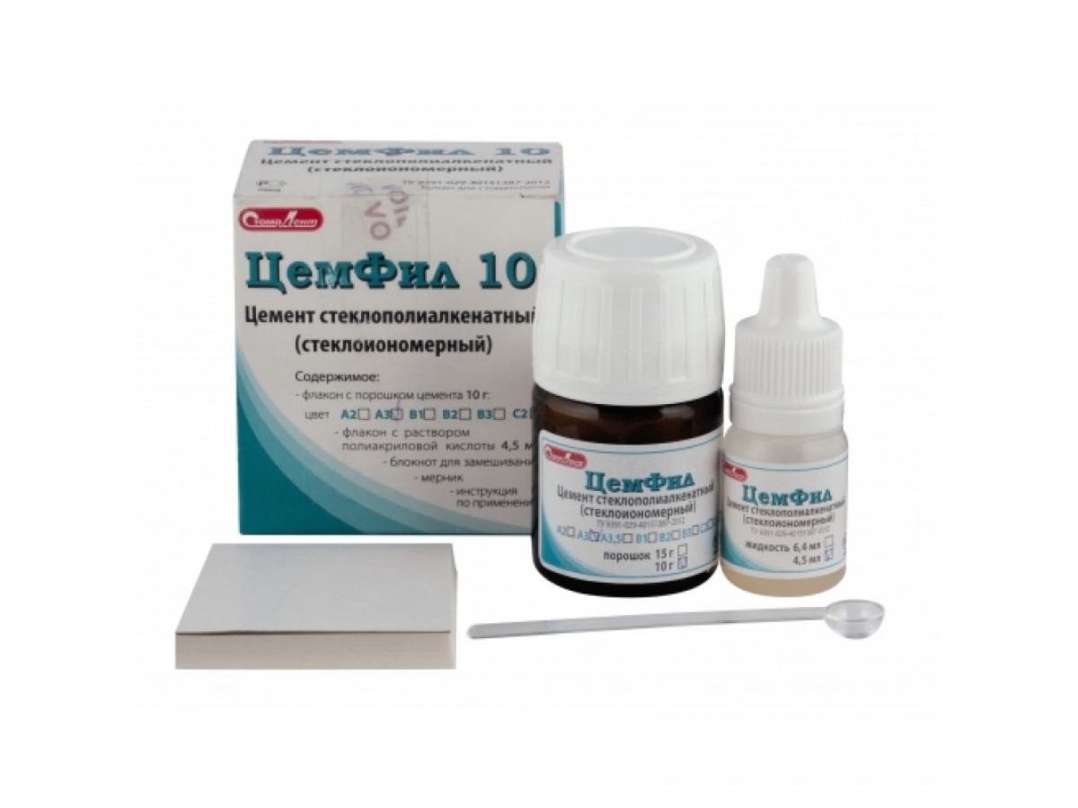 Цемфил 10 универсальный стеклополиалкенатный (стеклоиономерный) рентгеноконтрастный цемент для подкладок и реставрации. Производитель: СтомаДент, Россия.