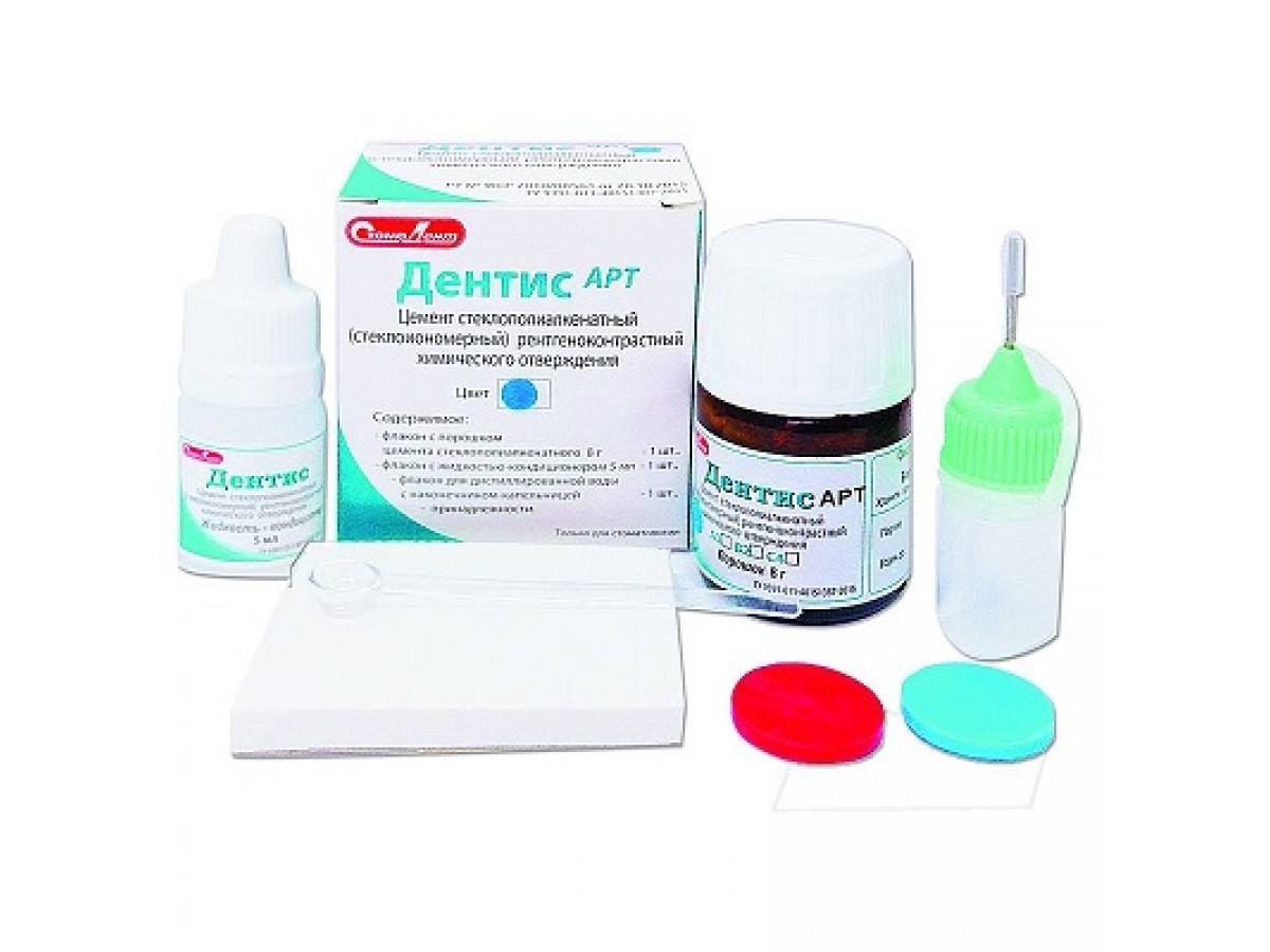 Дентис АРТ цветной универсальный высокопрочный стеклоиономерный цемент для реставрации и создания контрастной прокладки. Рекомендуется использовать в детской стоматологии для восстановления молочной группы зубов. А также, как дополнительная мотивация к лечению. Производитель: СтомаДент, Россия.