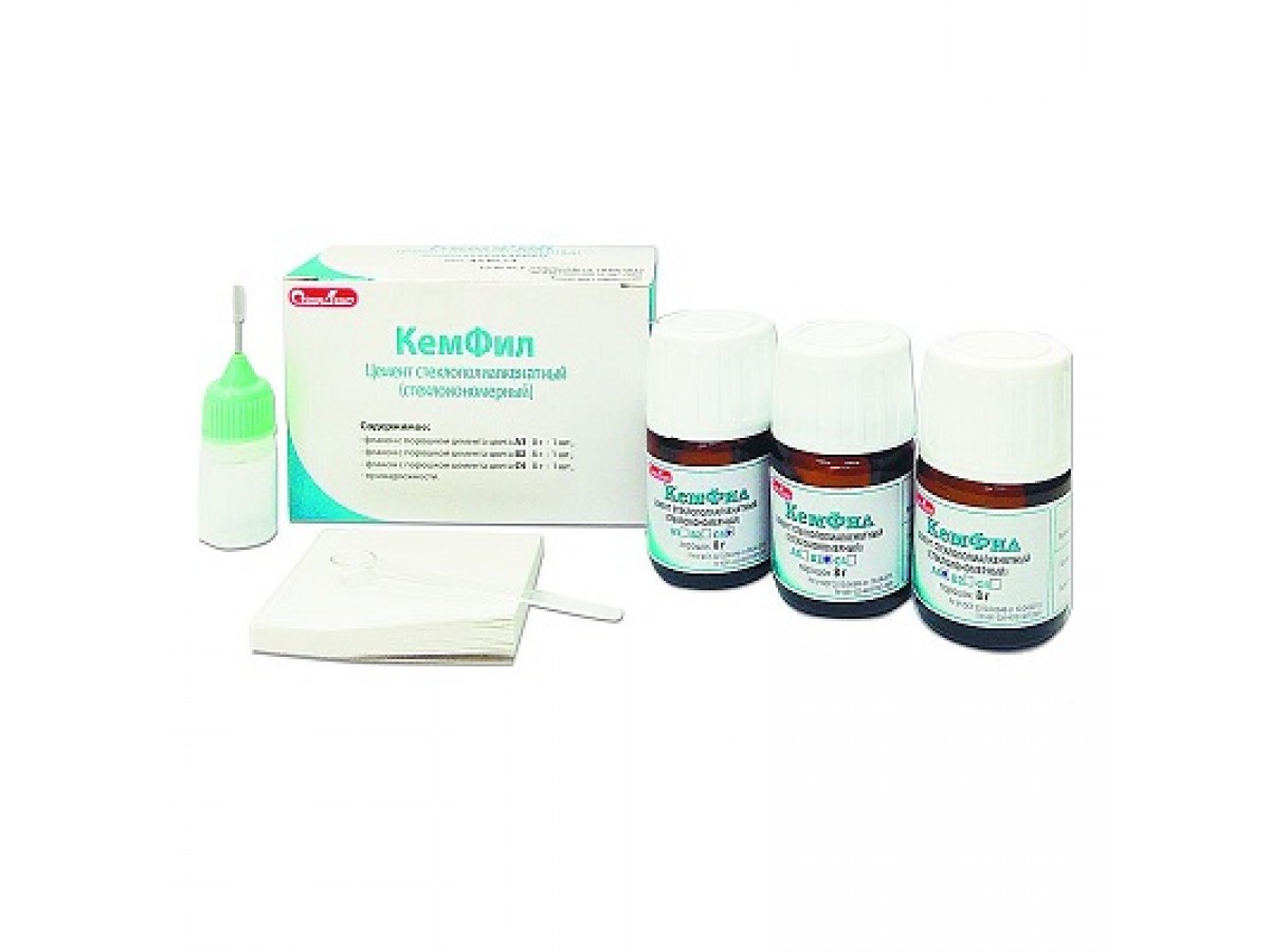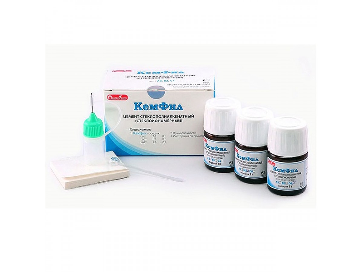 Стеклополиалкенатный цемент «Кемфил Супериор» — это материал, обладающий высокой биологической совместимостью с тканями зуба. Представляет собой порошок, состоящий из смеси алюмофторсиликатного стекла и полиакриловой кислоты, который при замешивании дистиллированной водой образует быстротвердеющий плотный материал.