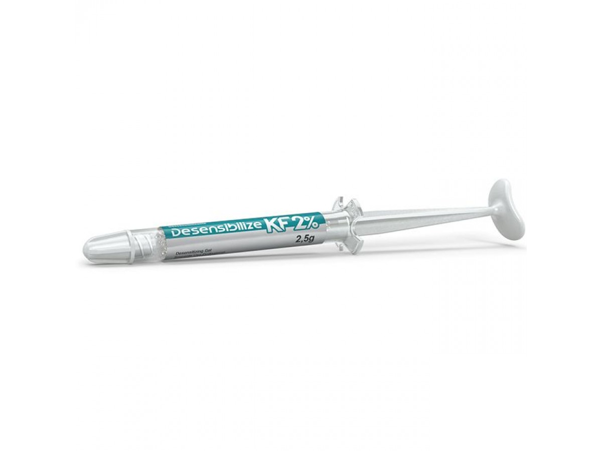 Входящие в состав геля компоненты обеспечивают двойную эффективность препарата: нитрат калия блокирует передачу нервных импульсов, а фторид натрия запечатывает дентинные канальцы. Жидкая консистенция упрощает нанесение геля, как непосредственно на зубы, так и в капу. Эффект от применения достигается мгновенно. Десенсибилизатор KF особенно рекомендуется использовать при проведении процедуры отбеливания.