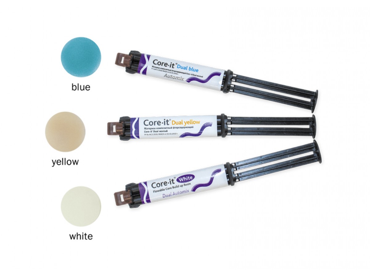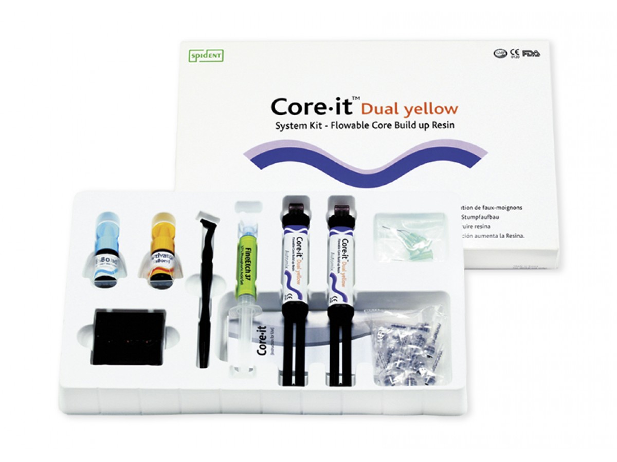 Core it Dual (Коре-Ит Дуал) - композитный материал двойного отверждения (свето- и самоотверждения). Производитель: Spident, Корея.