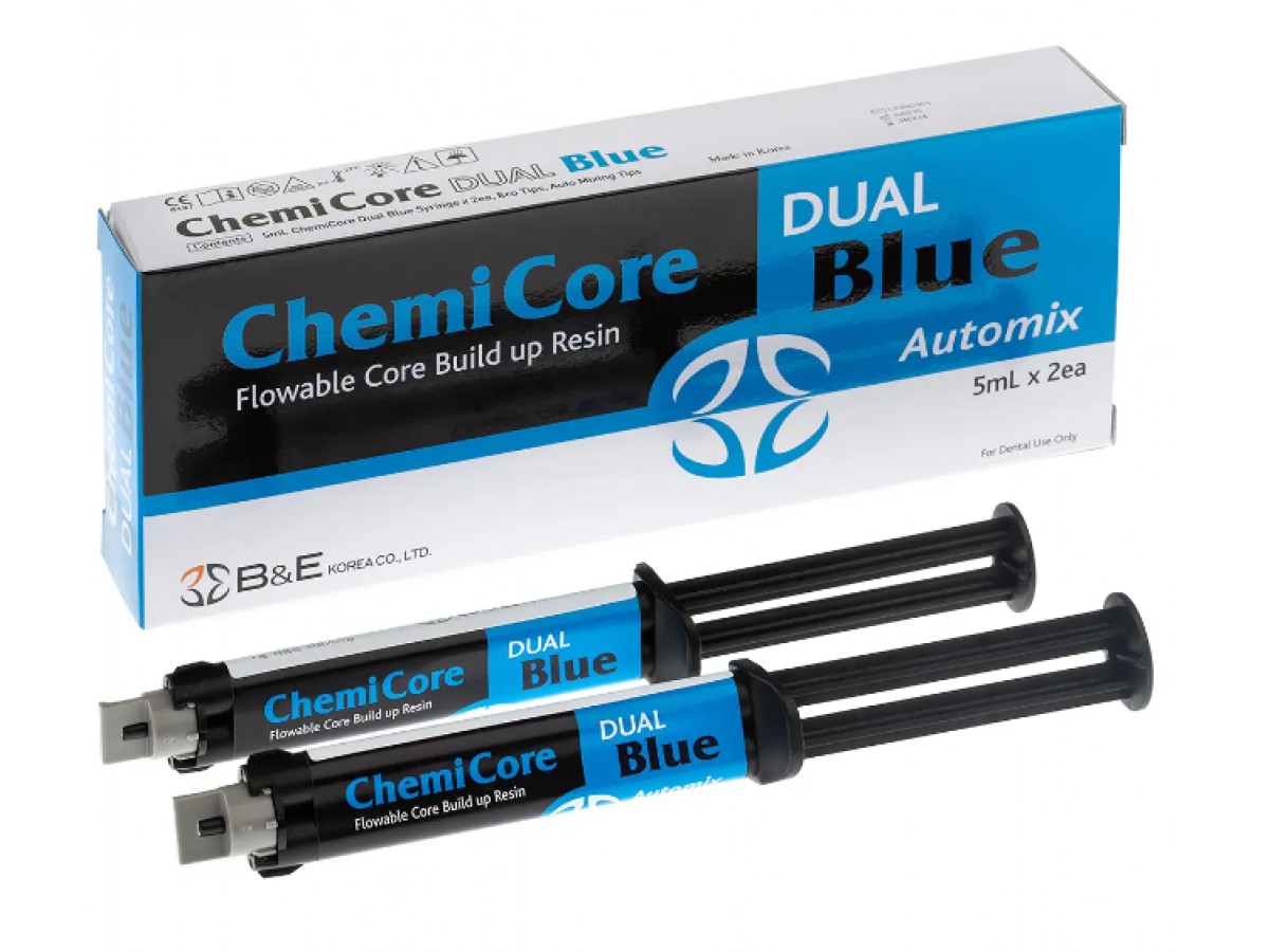 ChemiCore – композит двойного отверждения для восстановления культи зуба. Удобен в использовании, имеет прочность подобную прочности дентина. Эко-наконечники позволяют очень экономно расходовать материал. Производитель: B&E Korea, Южная Корея.