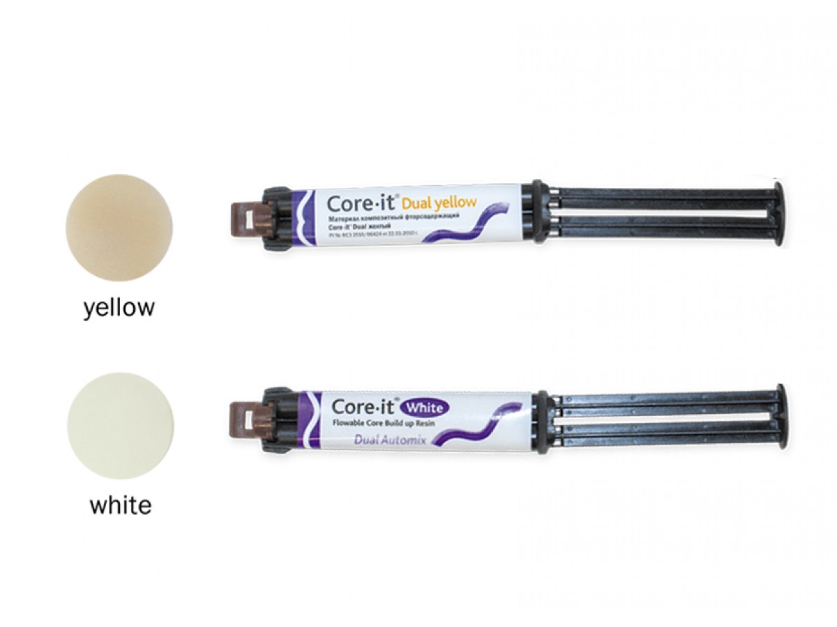Core it Dual (Коре-Ит Дуал) - композитный материал двойного отверждения (свето- и самоотверждения). Производитель: Spident, Корея.