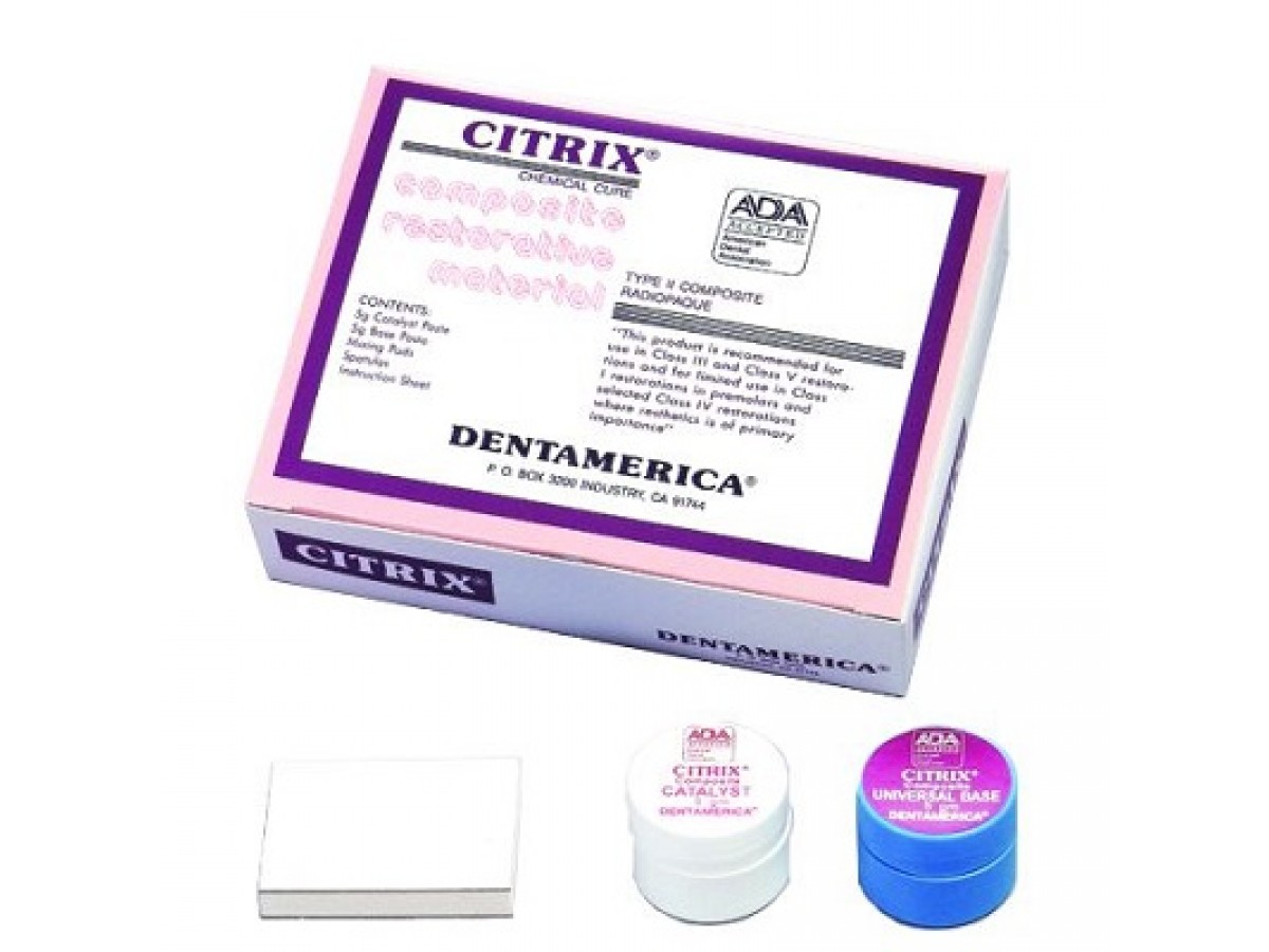 Citrix - данный композитный пломбировочный материал представляет собой композит из кристаллического оксида кремния с резиновыми связующими. Производитель:Dentamerica Inc., США.