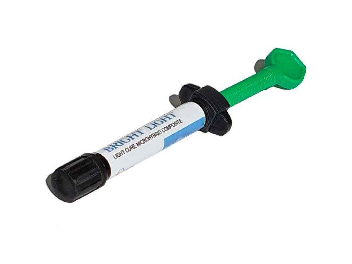 - Брайт Лайт (Bright Light) в шприце 4,5г - 4шт. (цвета: A2, A3, A3.5, B2) гель для травления эмали и дентина (Etching Gel) в шприце 3мл, однокомпонентный бонд (Single bonding) во флаконе 3мл, насадка для шприца с гелем для травления эмали и дентина (тип 1/тип 2) - 3 штуки.