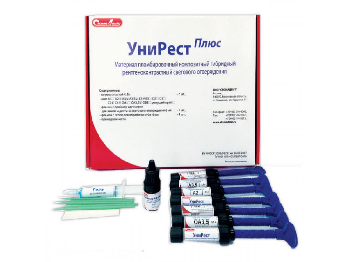 - Композитный пломбировочный материал светового отверждения «УНИРЕСТ» предназначен для восстановления полостей зубов I - VI классов у взрослых и детей. Отверждается видимым светом длиной волны 450 - 500 нм.