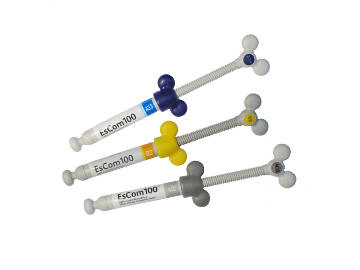 EsCom 100 (Эском 100) - наногибридный композиционный материал, подходит для всех полостей фронтальных и боковых зубов. Производитель: Spident, Корея.