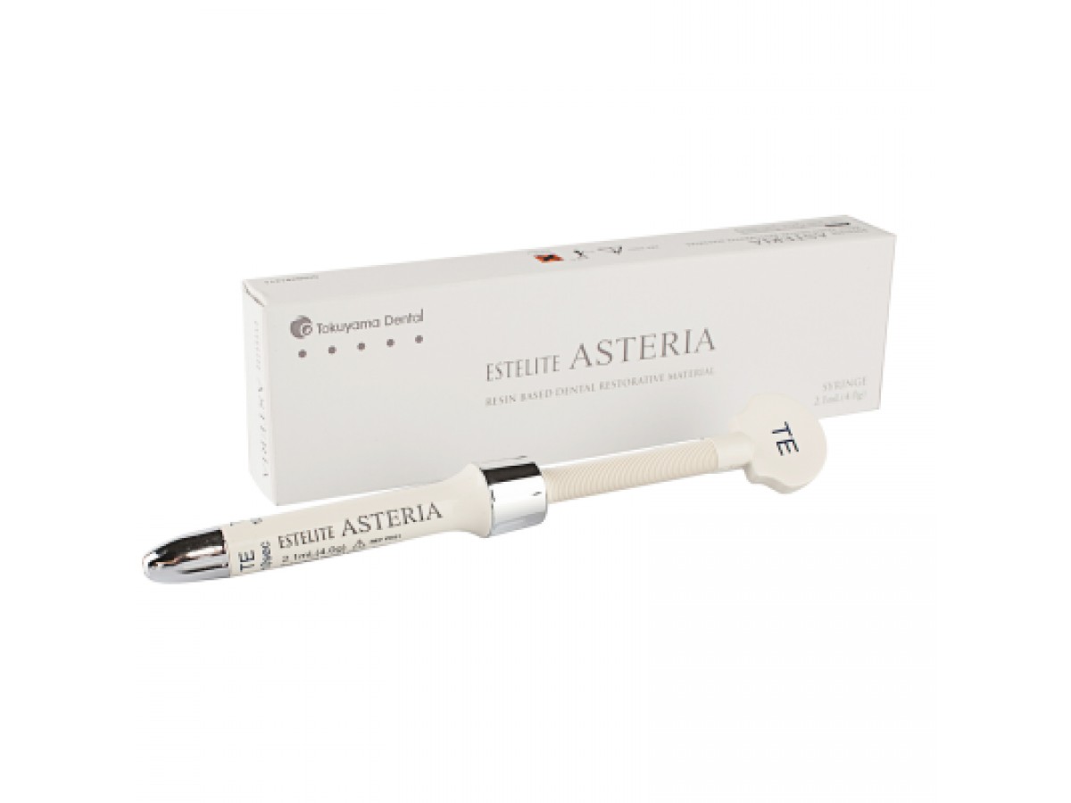 Estelite Asteria Syringe - светоотверждаемый, рентгенконтрастный композиционный материал, предназначенный для использования при реставрации передних и боковых зубов. Подходит для кариозных полостей всех классов, включая реставрации, требующие минимального препарирования полости или без ее препарирования. Производитель: Tokuyama Dental, Япония.