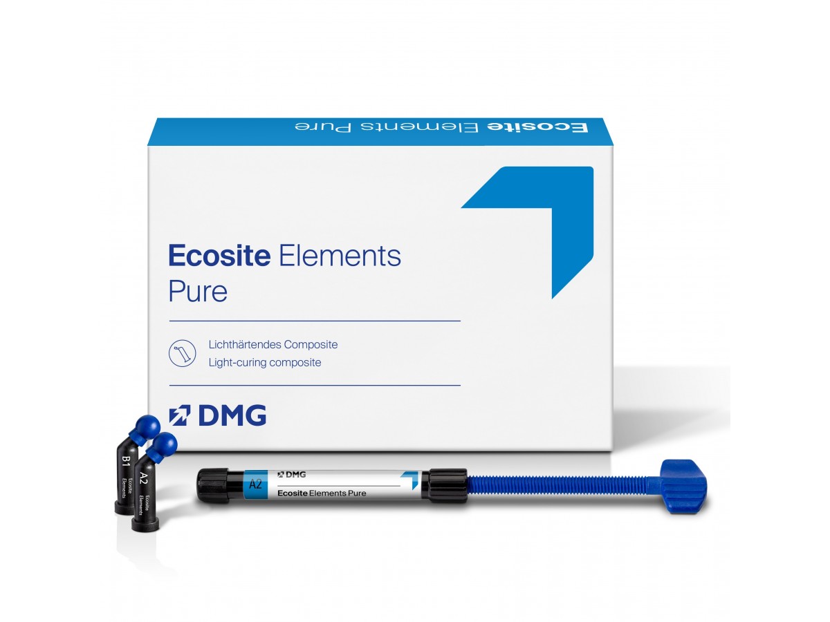 Ecosite Elements (Экосайт Элементс) – светоотверждаемая эстетическая рентгеноконтрастная наногибридная композитная система для использования во фронтальном и боковом отделах. Ассортимент композитов высокой вязкости включает 5 оттенков VIVA (B1, A2, A3, A3,5 и A4) и 4 оттенка эмали (Enamel Bleach = EB, Enamel Light = EL, Enamel Medium = EM and Enamel Dark = ED) различной опаковости. Все это в сочетании с уникальными манипуляционными свойствами и отличной полируемостью способствует созданию высокоэстетичных пломб.